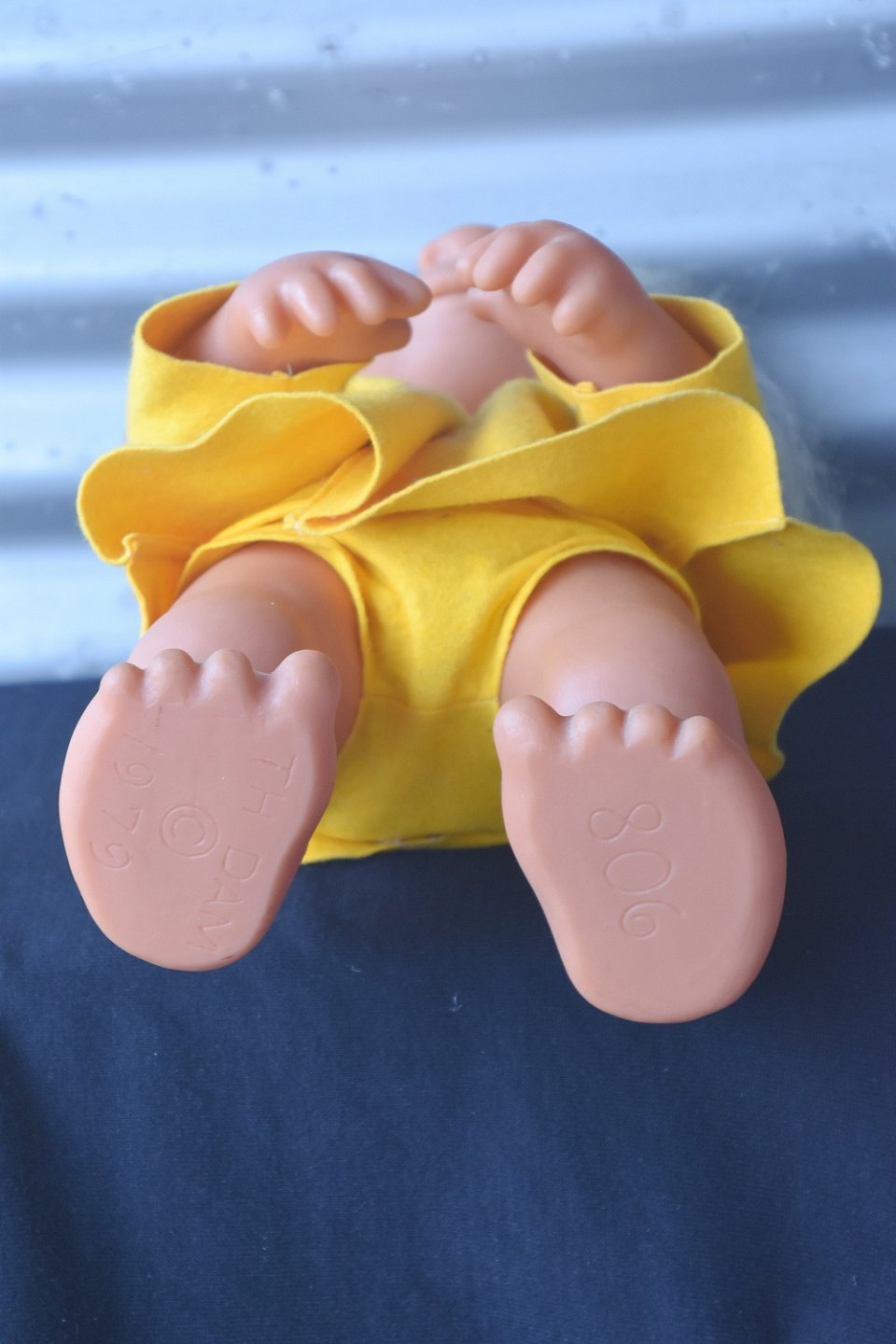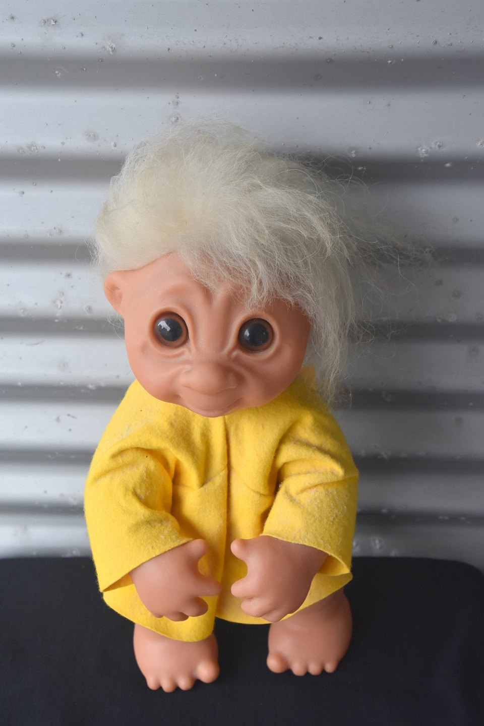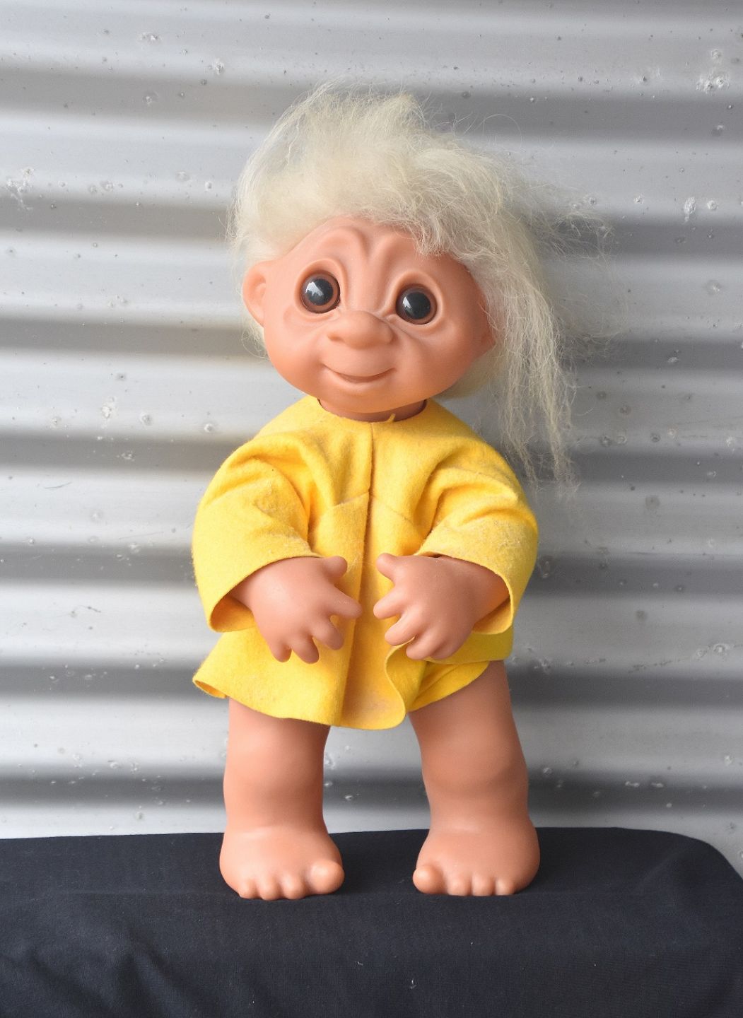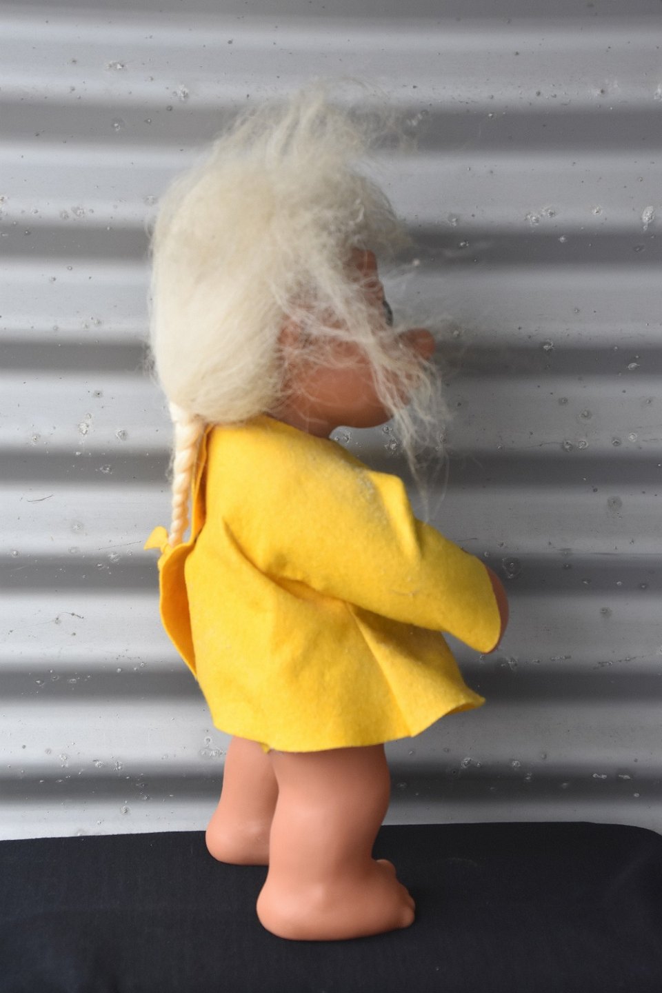 Thomas Dam, Gjøl Trold, Dam Trold (806). Pige trold med hvidt hår og fletning, gul filt kjole og gule filt bukser
