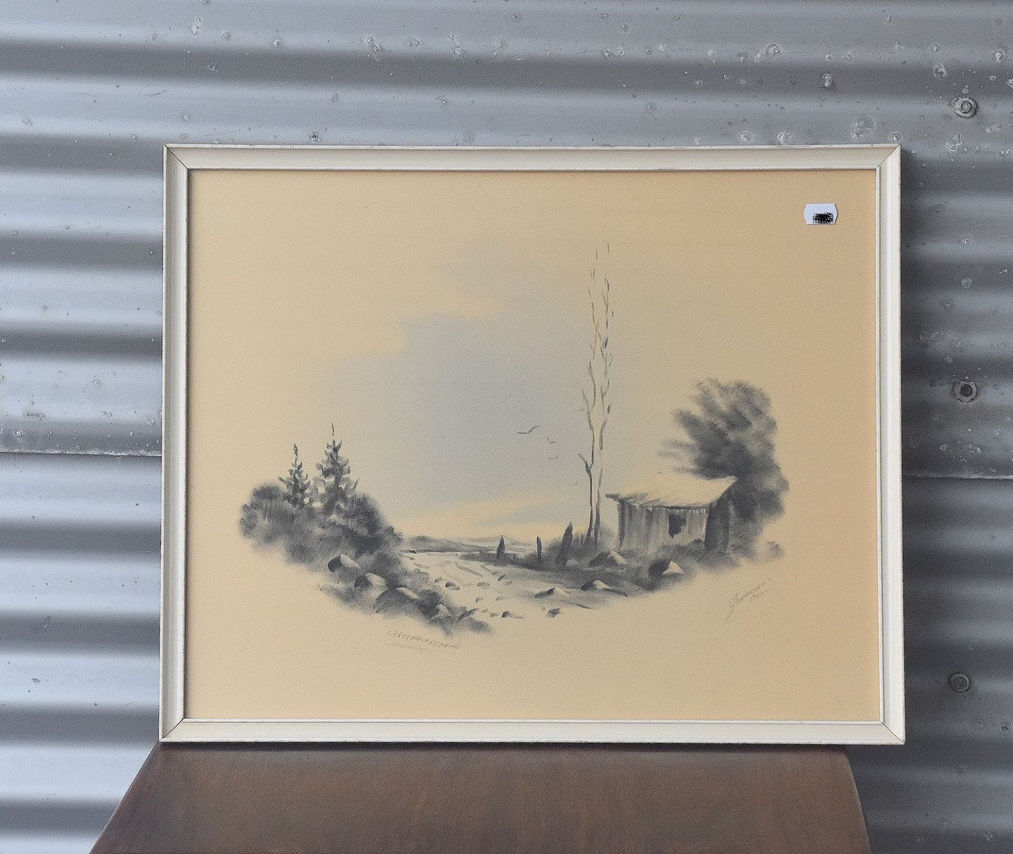 Tegning, skur på mark, af Elsius Johansen. Originaltegning fra 1960.