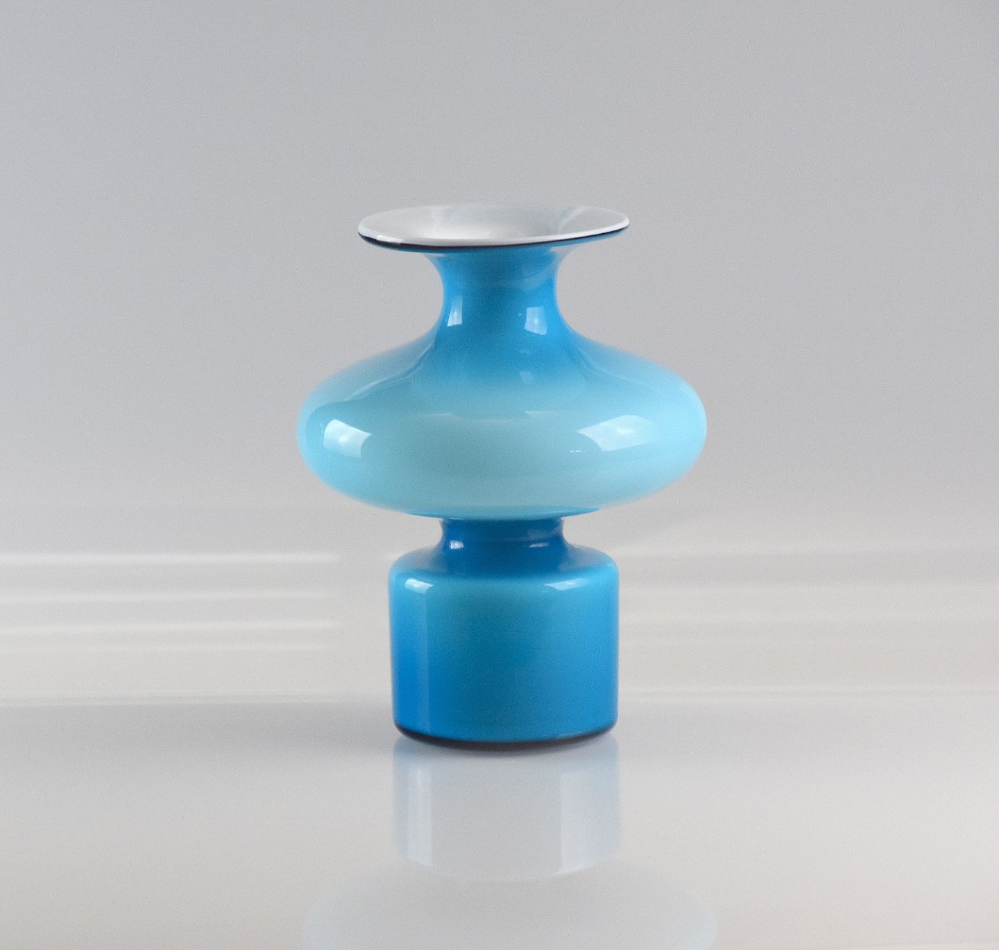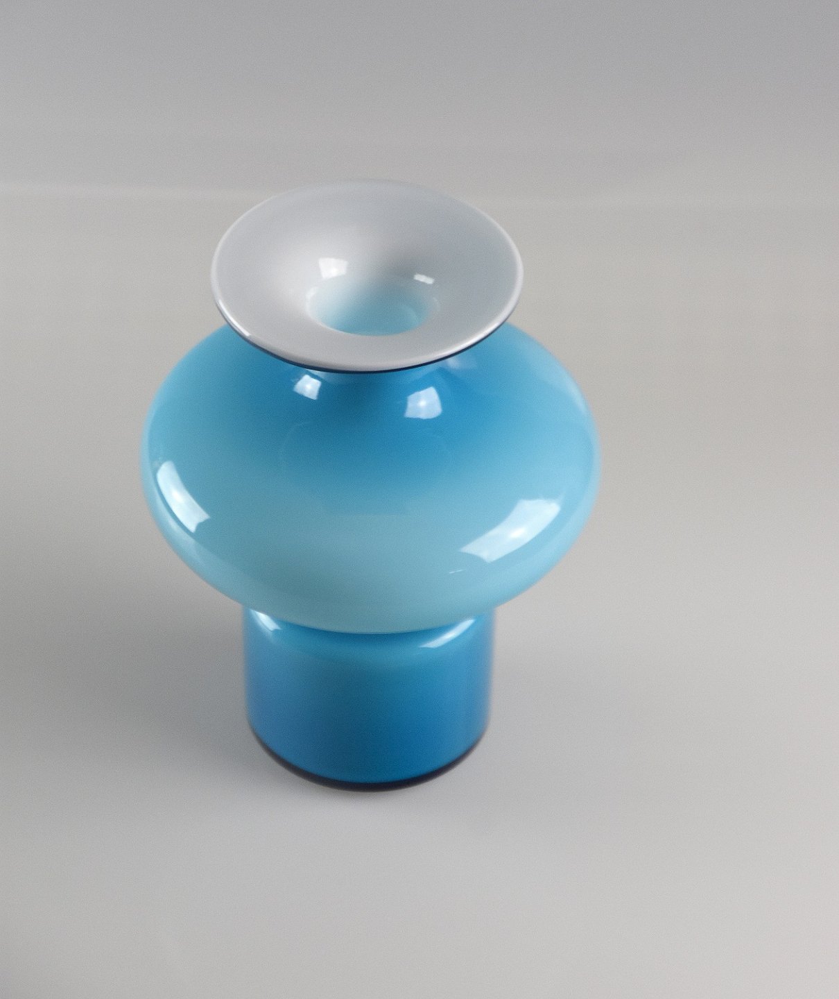 Design Per Lütken opalhvidt glas med turkis blåt overfang.