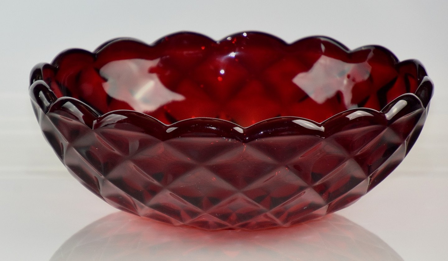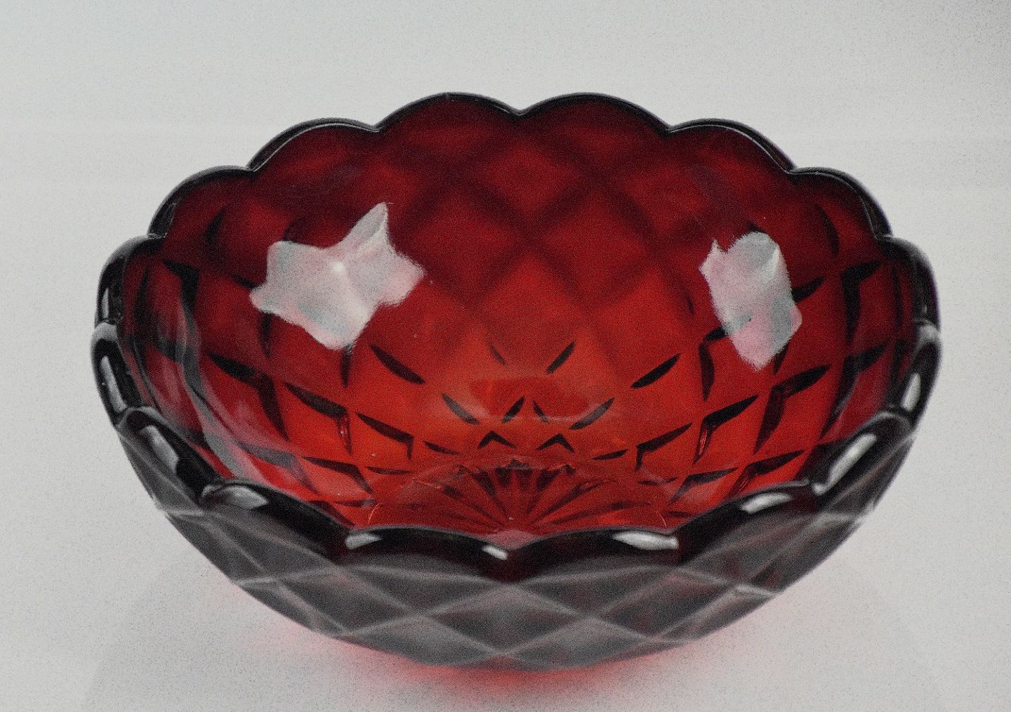 Rød Odin skål, presset glas fra Fyens Glasværk