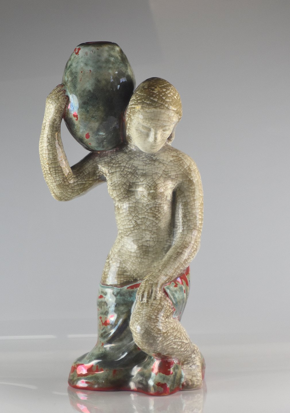 Keramik, keramikfigur, lertøj, lertøjsfigur, krakkeleret figur, kvindefigur, Michael Andersen figur, Bornholm keramik figur, figur