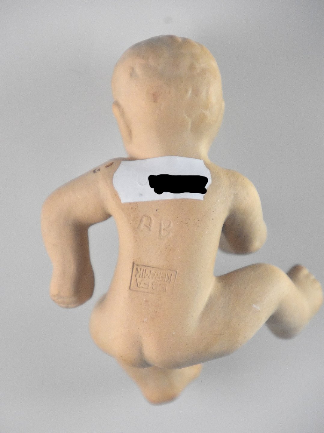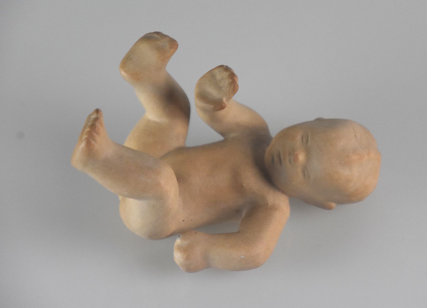 Figur af nøgen barn i keramik.