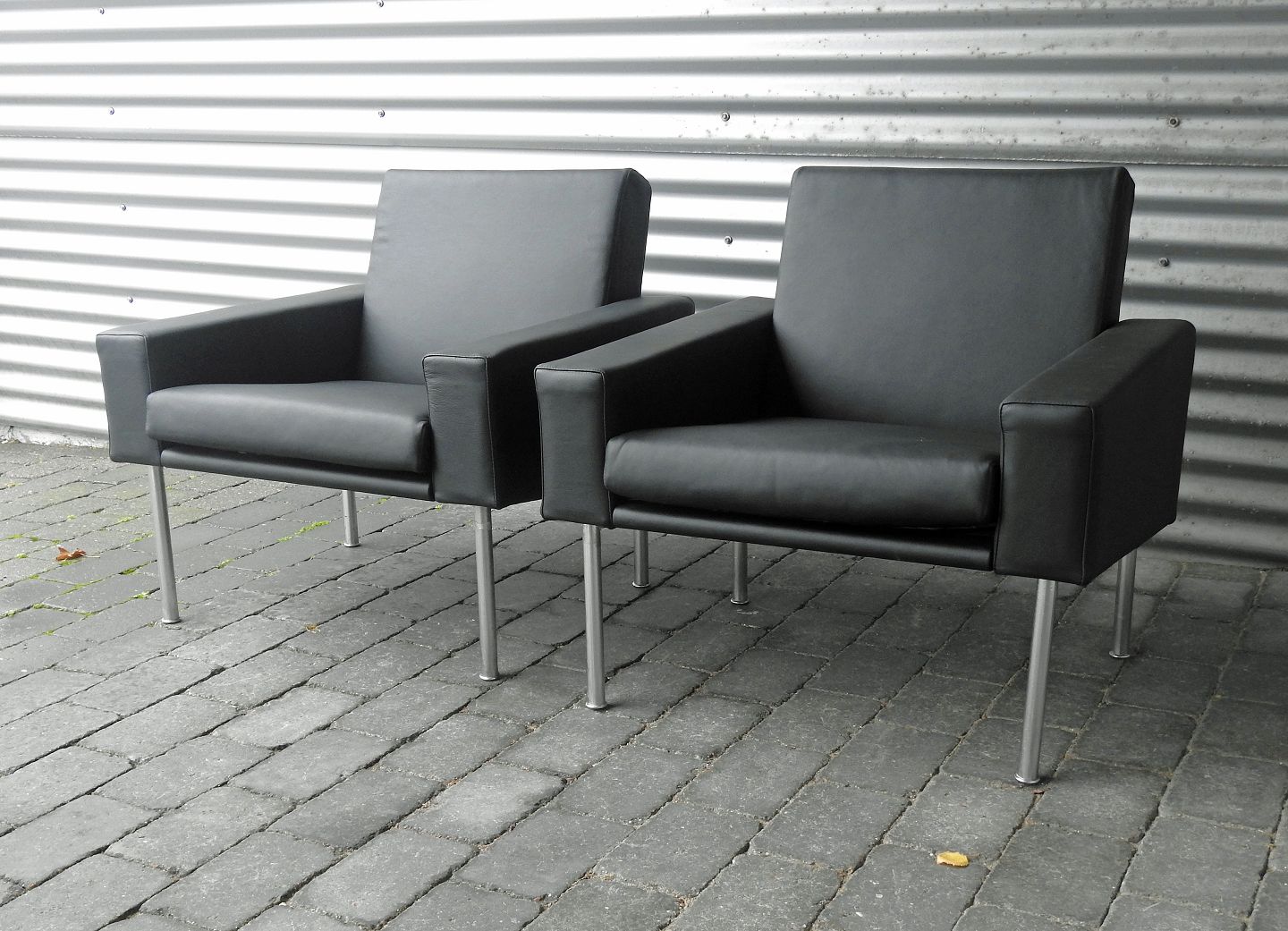 To styk Lufthavnsstole i sort læder model AP-34/1