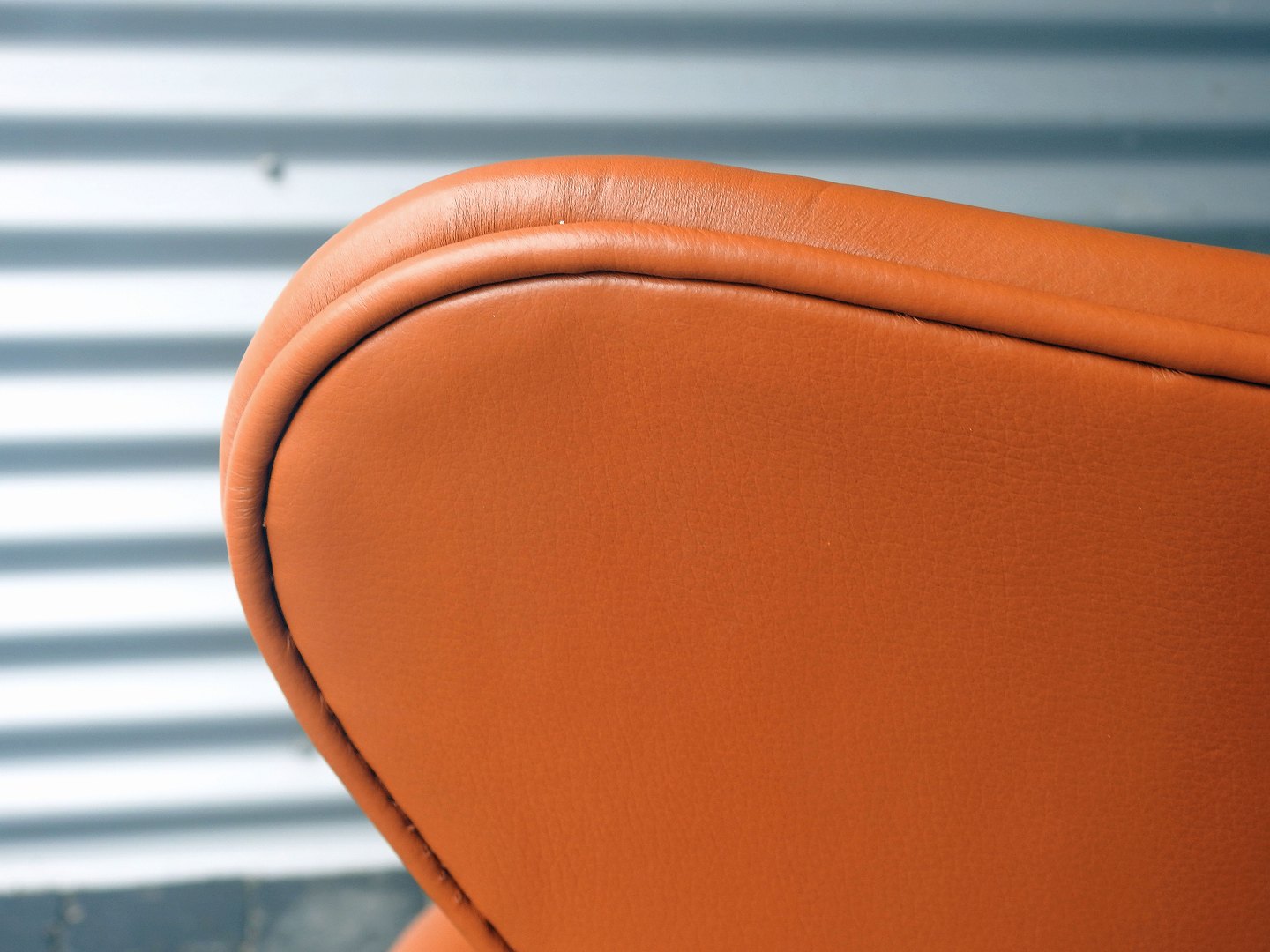 Fremstår med nypolstret sæder i cognacfarvet læder.