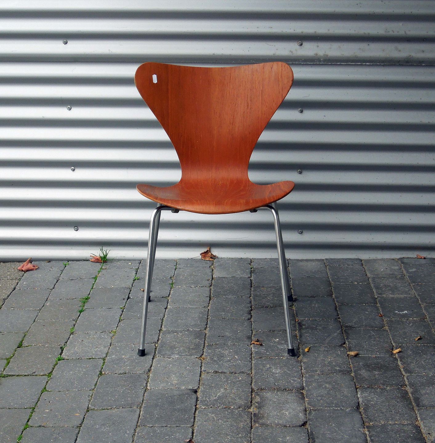 7'er stol af Arne Jacobsen i teak. Produceret ved Frits Hansen.