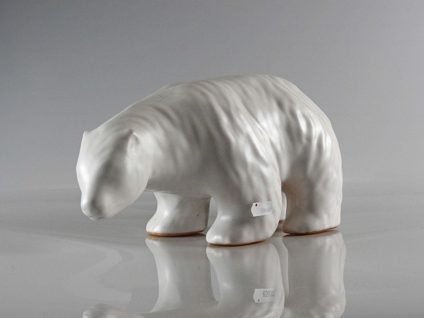Isbjørn i hvidglaseret keramik fra Johgus keramik.