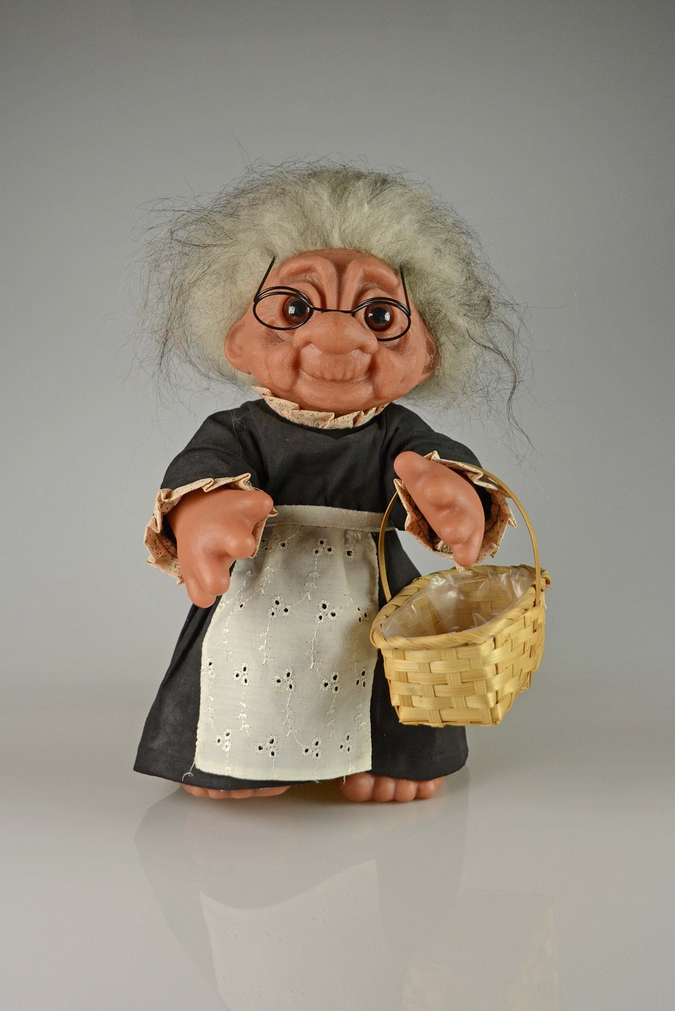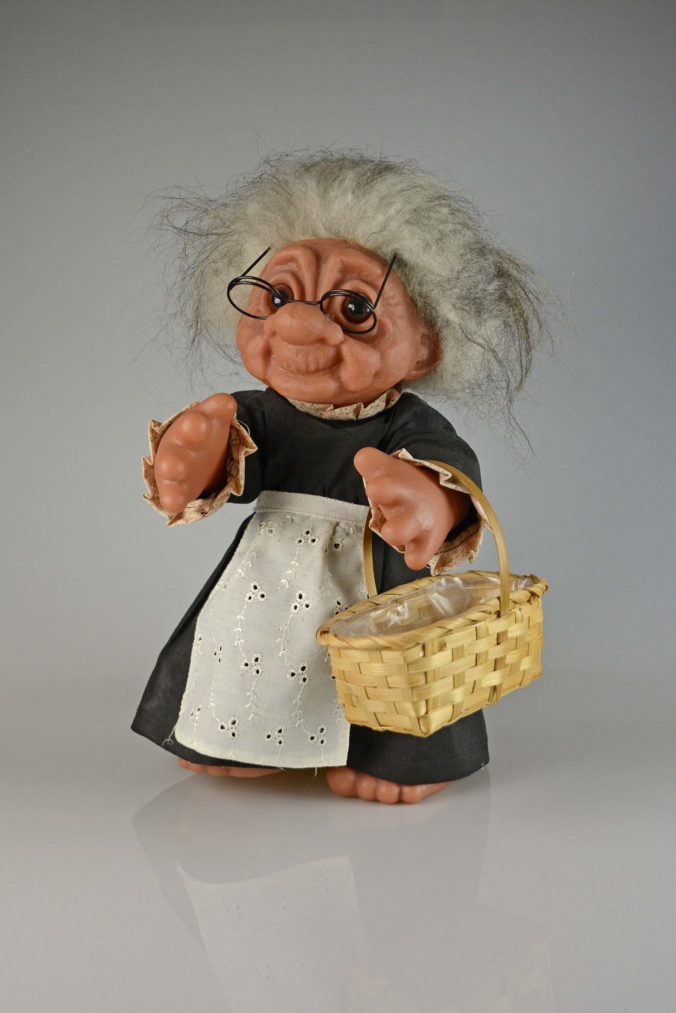 Bedstemor trold med flet kurv fra Gjøl troldeserien. Stor størrelse.