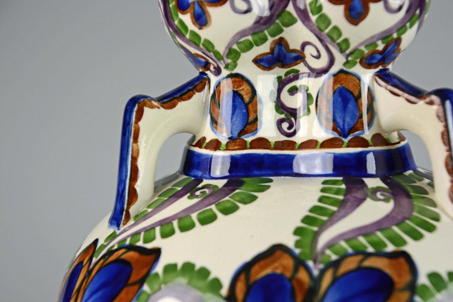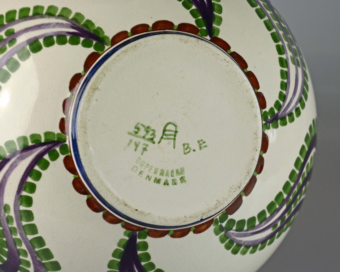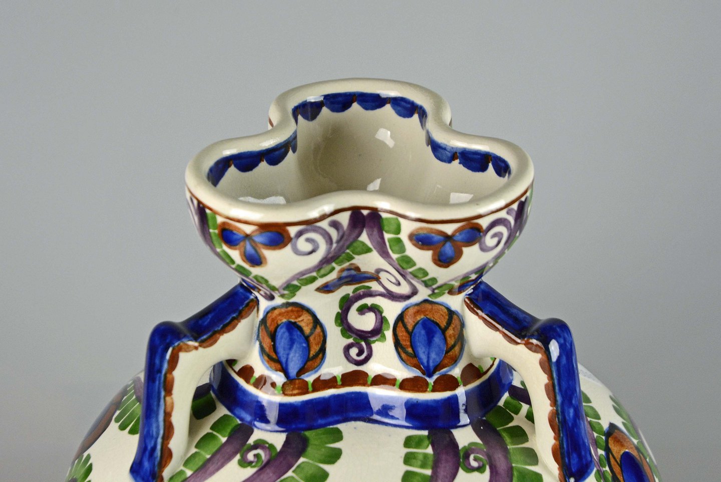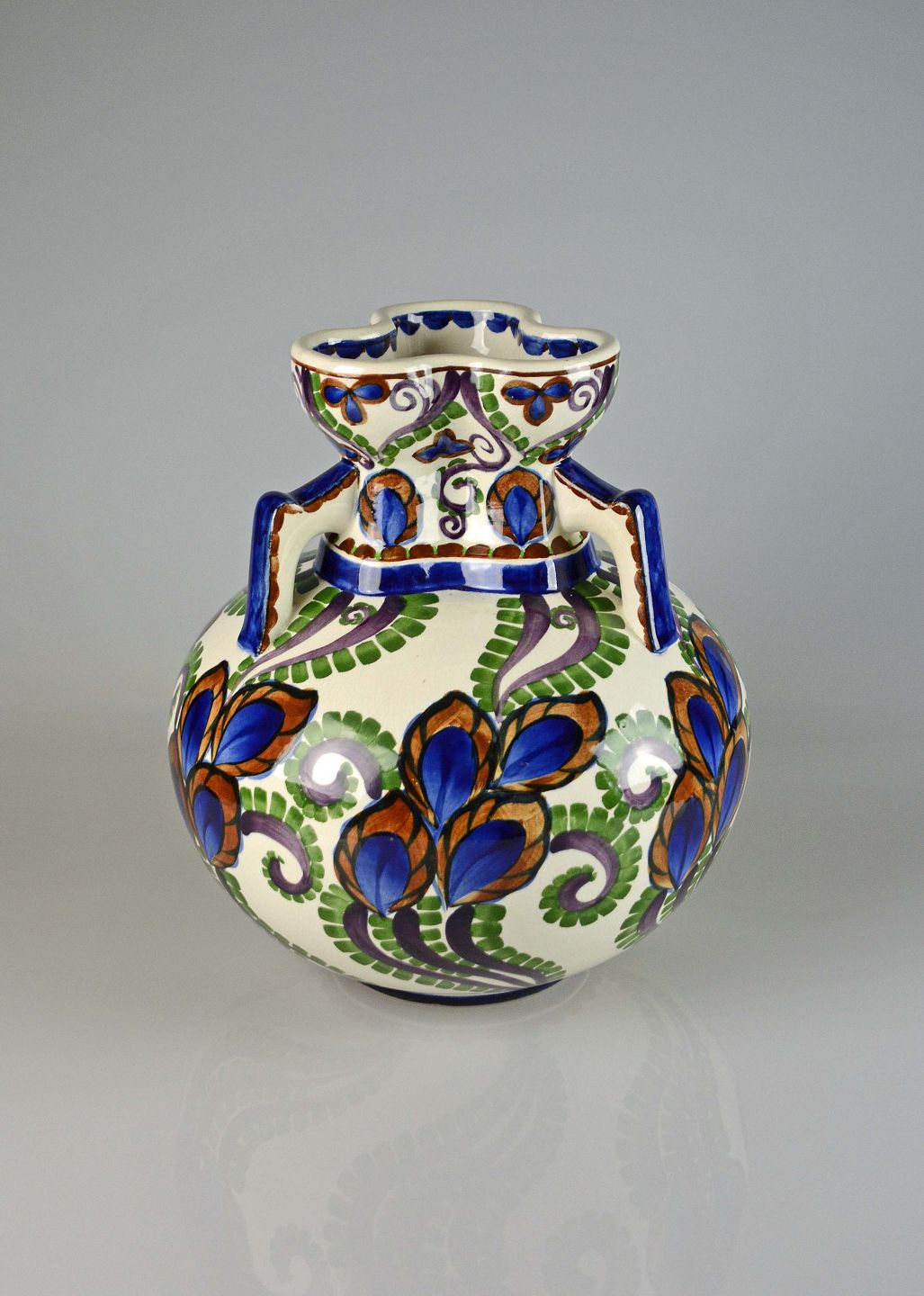 Rund vase i kunstfajance med tre hanke fra Aluminia nr. 593/147