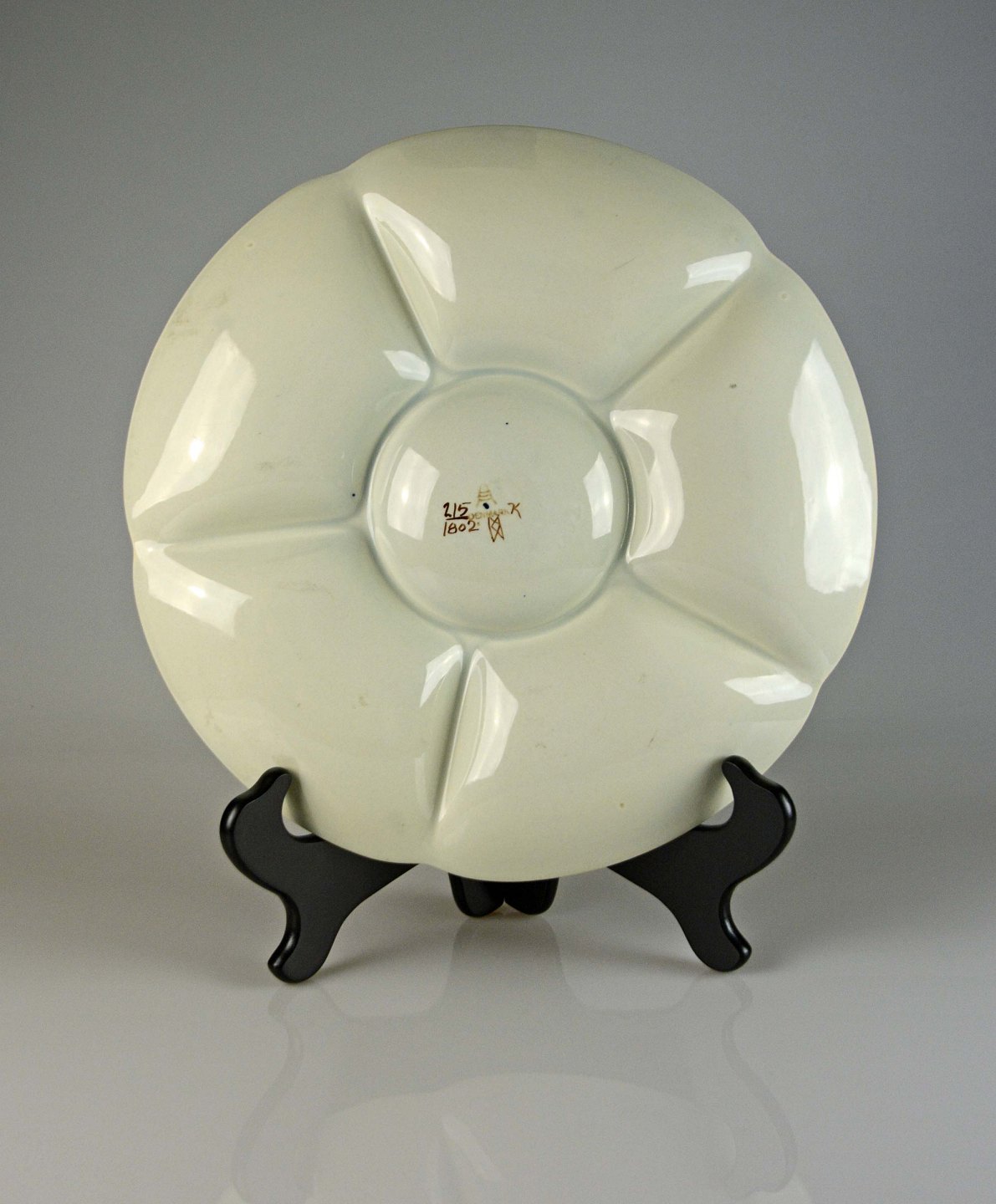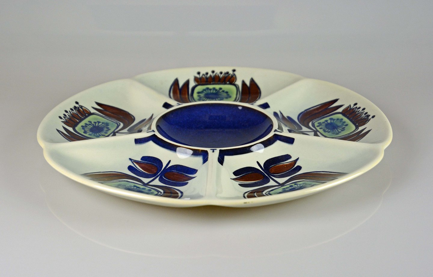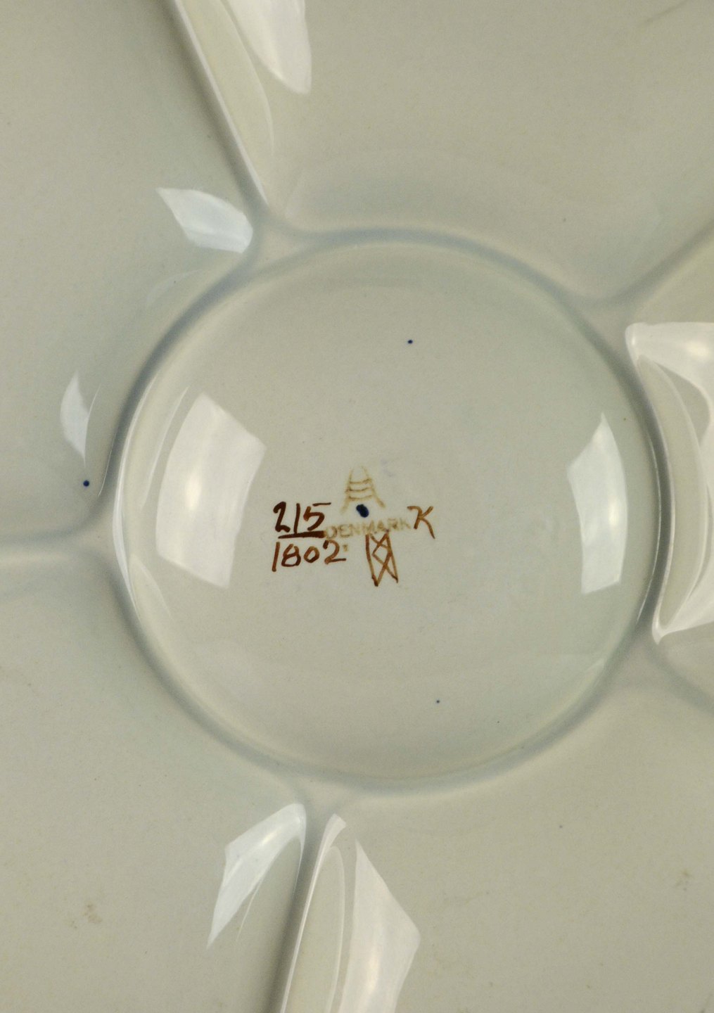 Fadet måler H. 2 cm. Ø. 27 cm. Det er den tidligere udgave af det kongelige udgave fra Royal Copenhagen fajance.