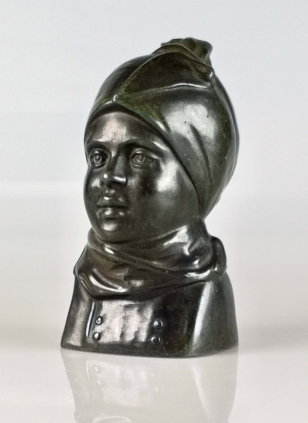Buste, metalfigur, diskometal, skulptur, figur, Just Andersen figur. diskometal figur.