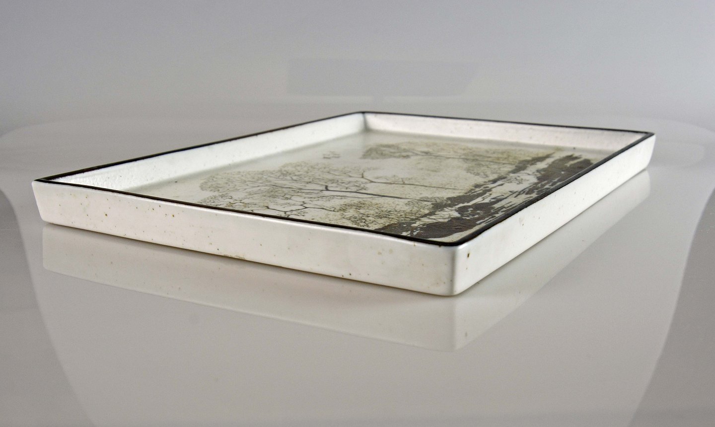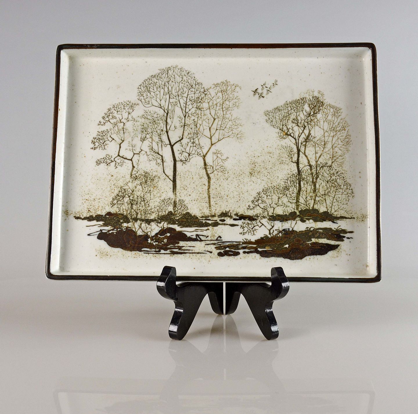 Fad i fajance med skovmotiv fra Royal Copenhagen fajance nr. 1060/5330. Også brugt til teak bord