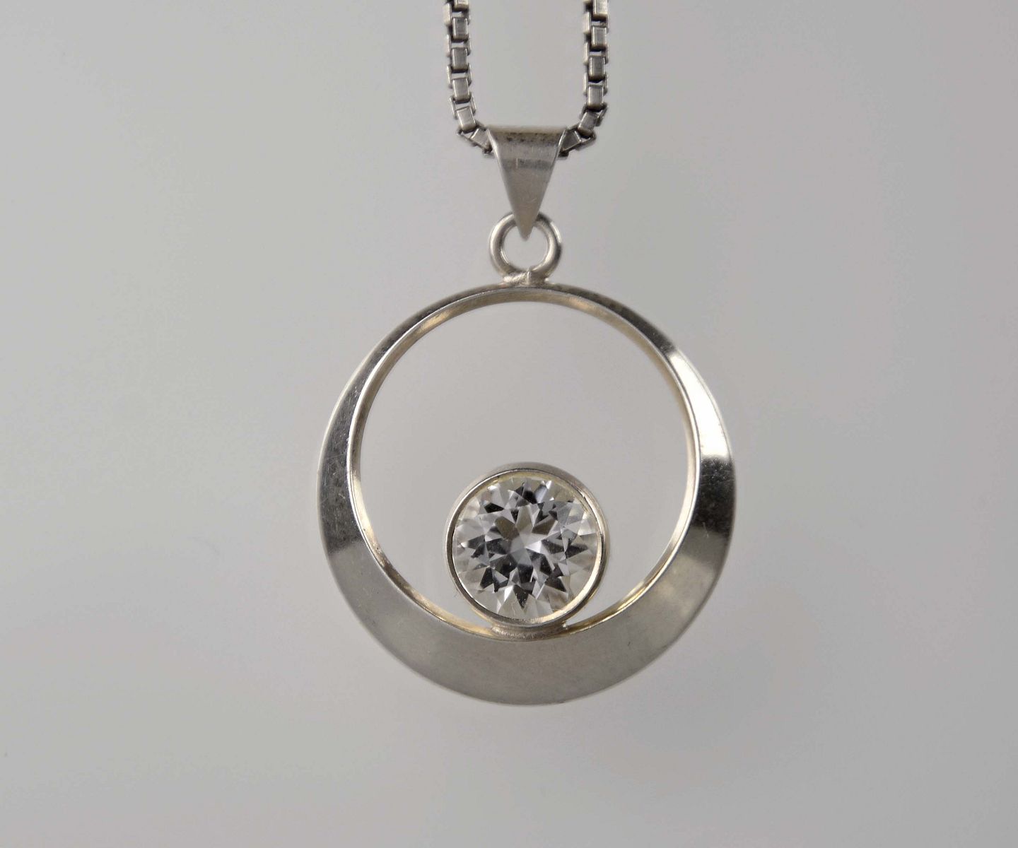 Rundt vedhæng i sterling sølv med slebet sten fra NE From