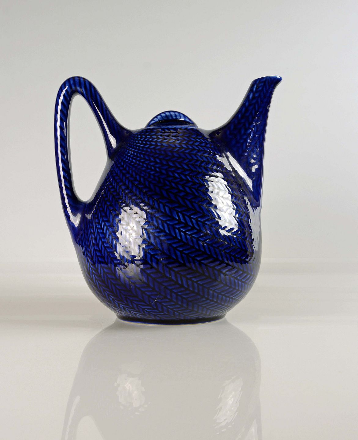 Blå Eld, Blå ild, blå eld tekande, svensk porcelæn, Hertha Bengtson kande, Rørstrand kande, tepotte, sildebensmønster