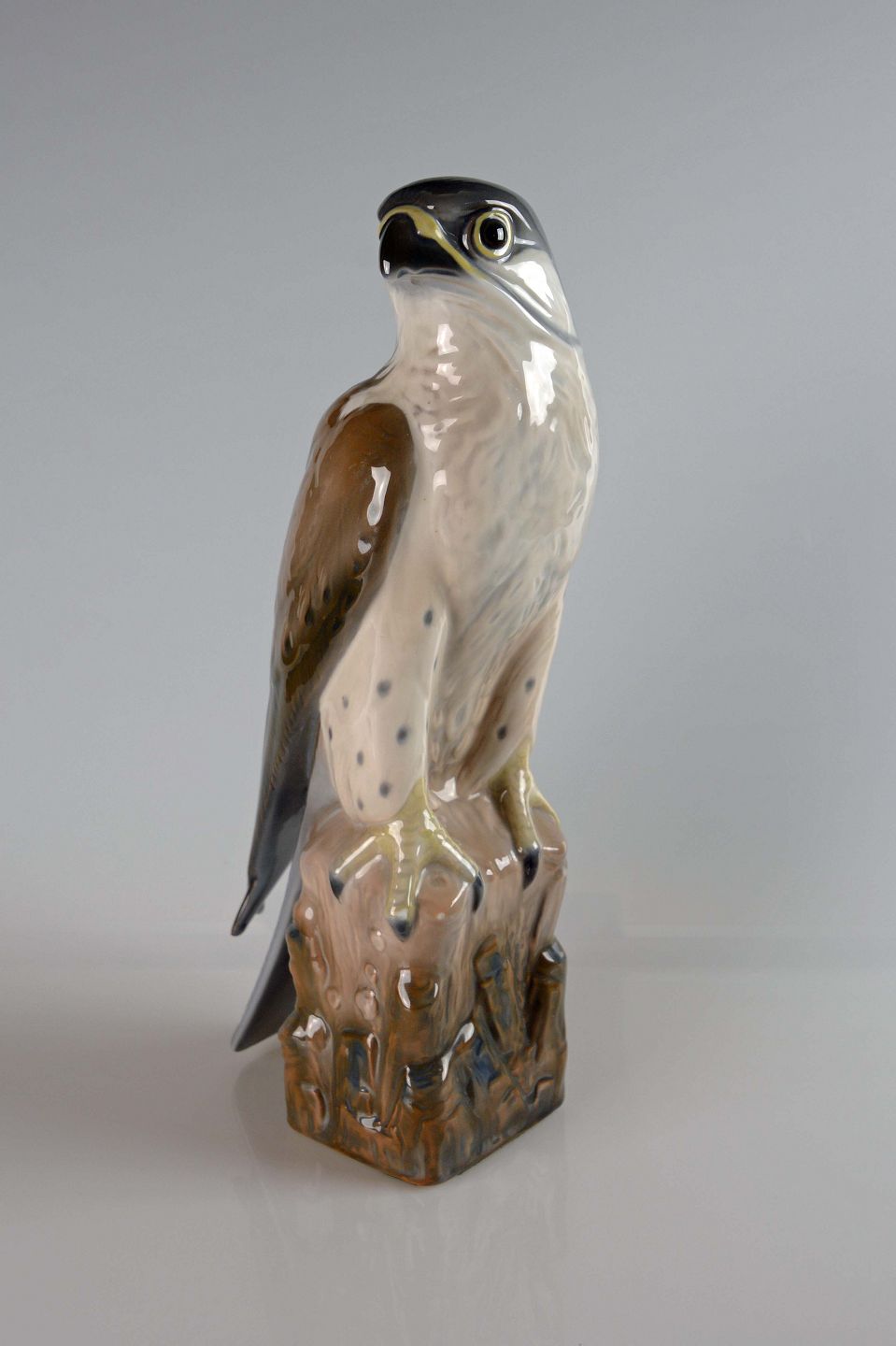 Figur af falk fra Porcelænsfabrikken Danmark der markedsførte Lyngby Porcelænsfigurer, mærket nr. 81A