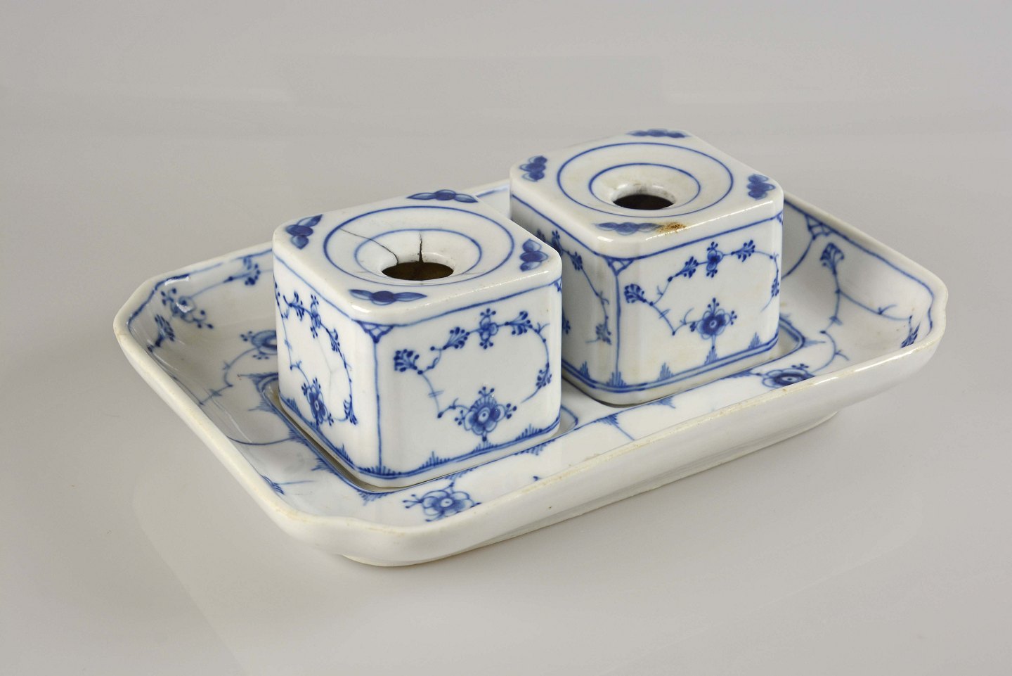 Blækhussæt, antik porcelæn, B&G antik, B&G porcelæn, Blåmalet porcelæn, Bing og Grøndahl porcelæn, B&G musselmalet
