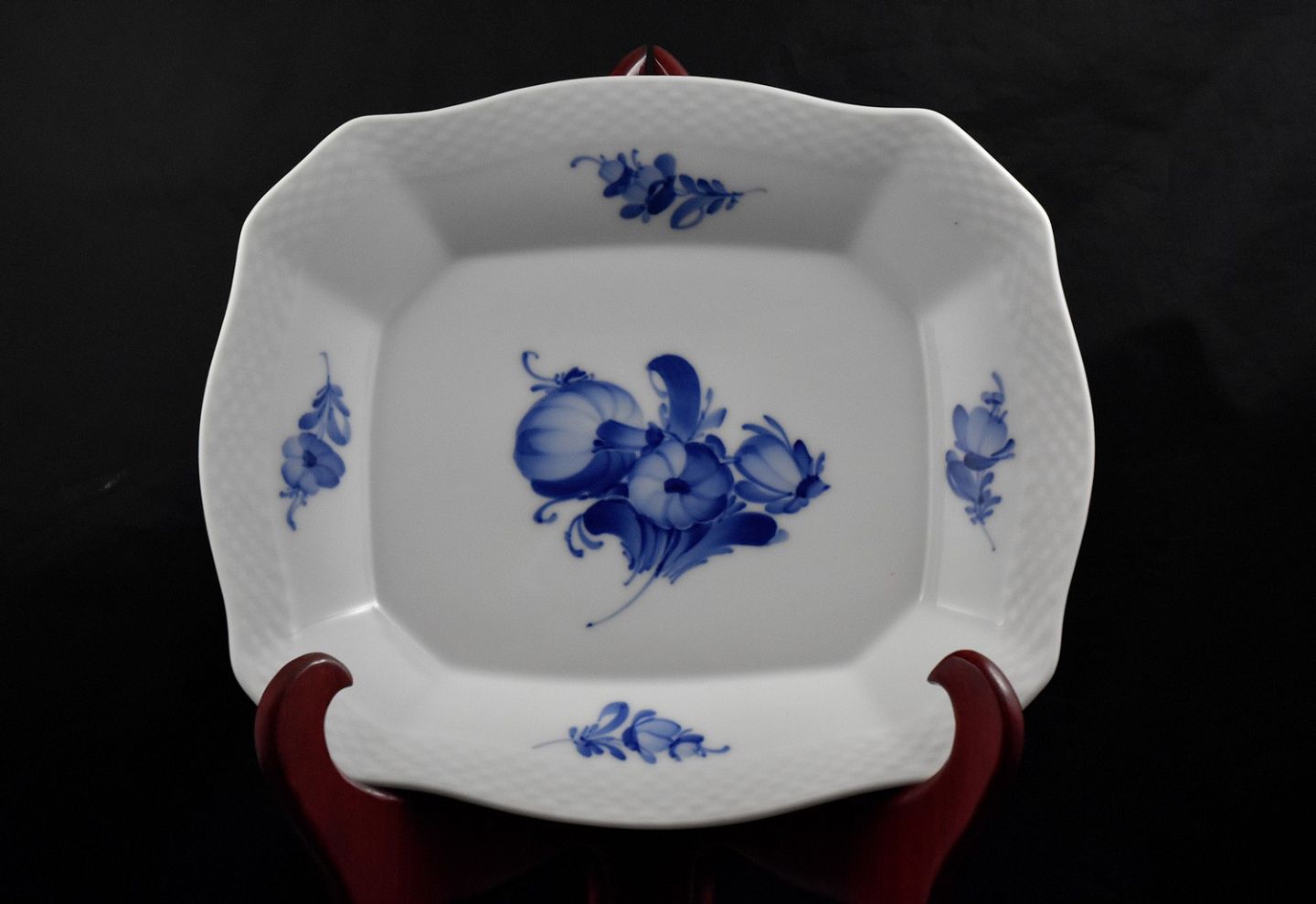 RC Blå blomst kantet aflangt fad nr. 8609