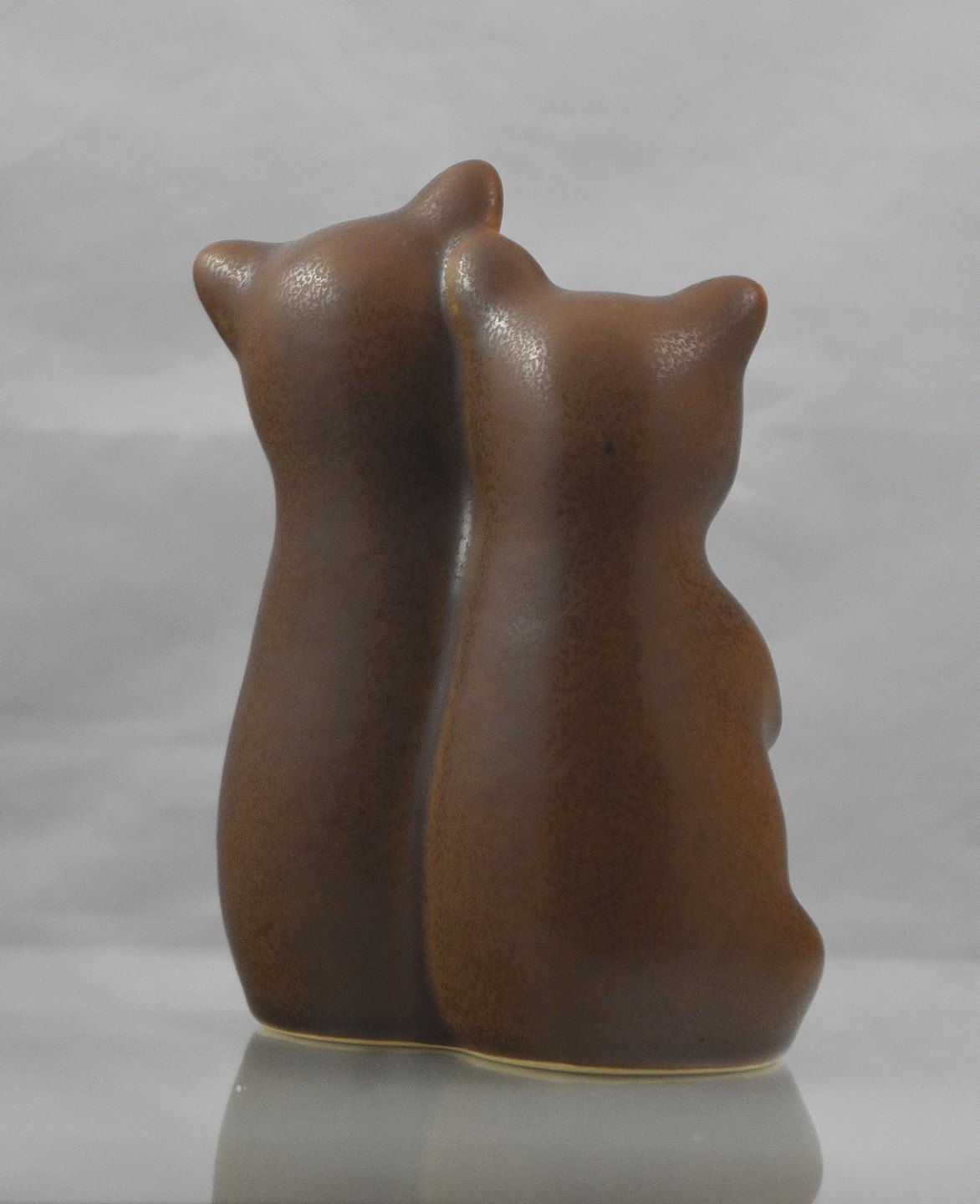 Figur af to bjørne i stentøj med harpelsglasur