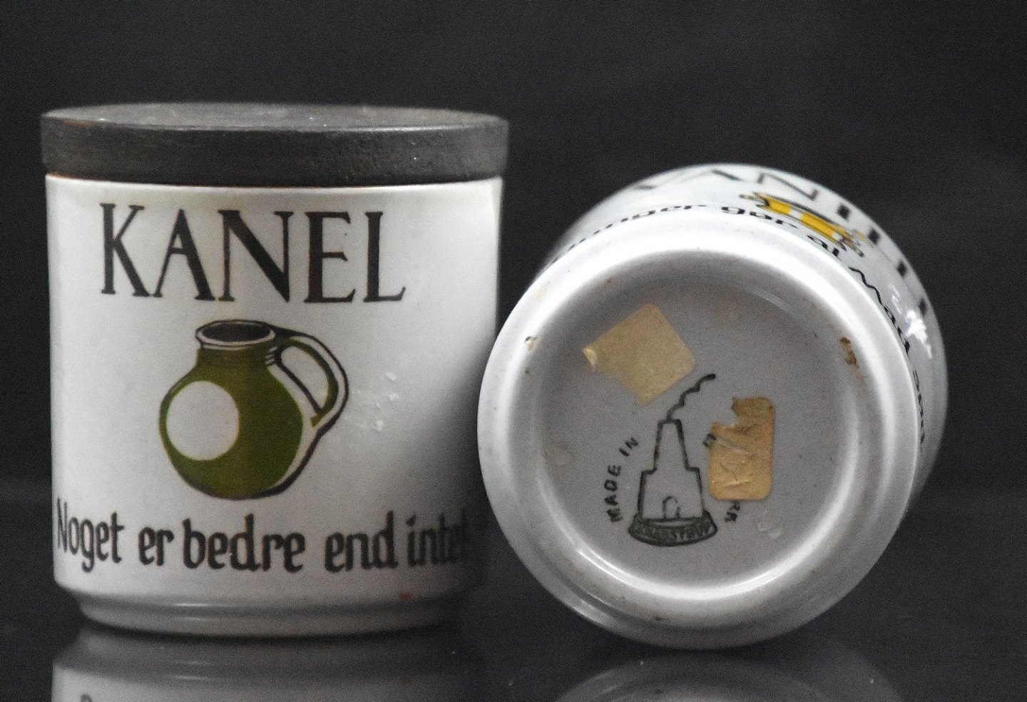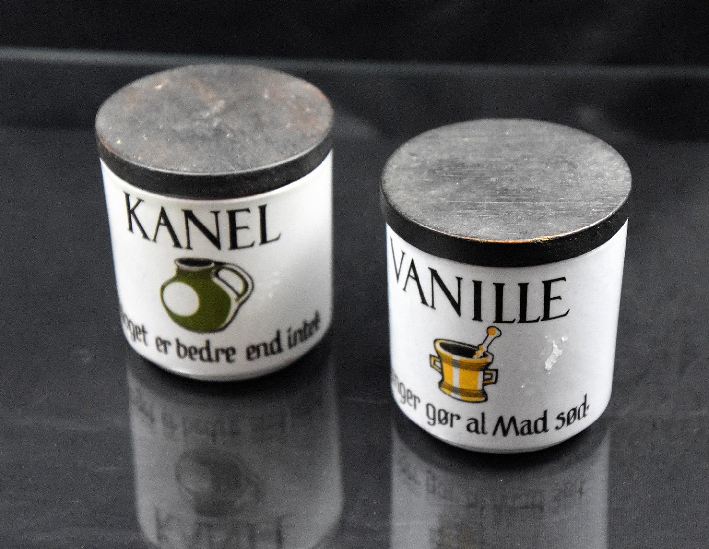 Knabstrup, små krydderi bøtter med teaktræs låg.