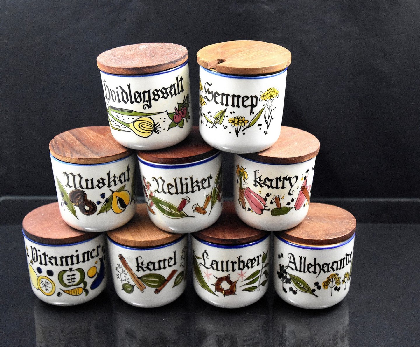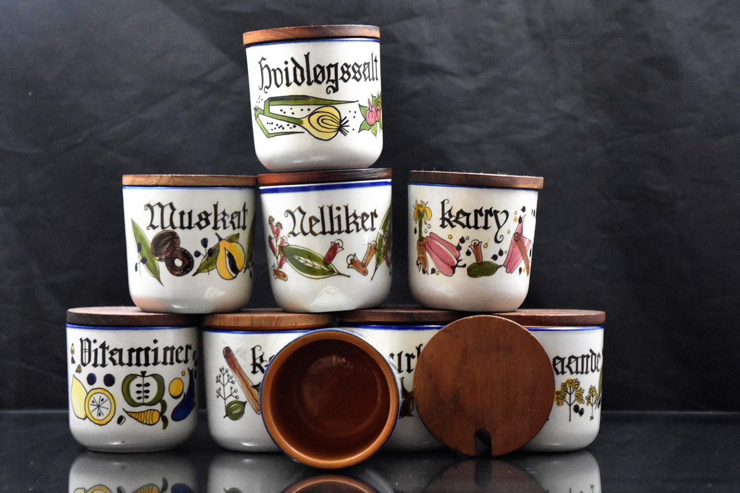Knabstrup, små krydderi bøtter med teaktræs låg