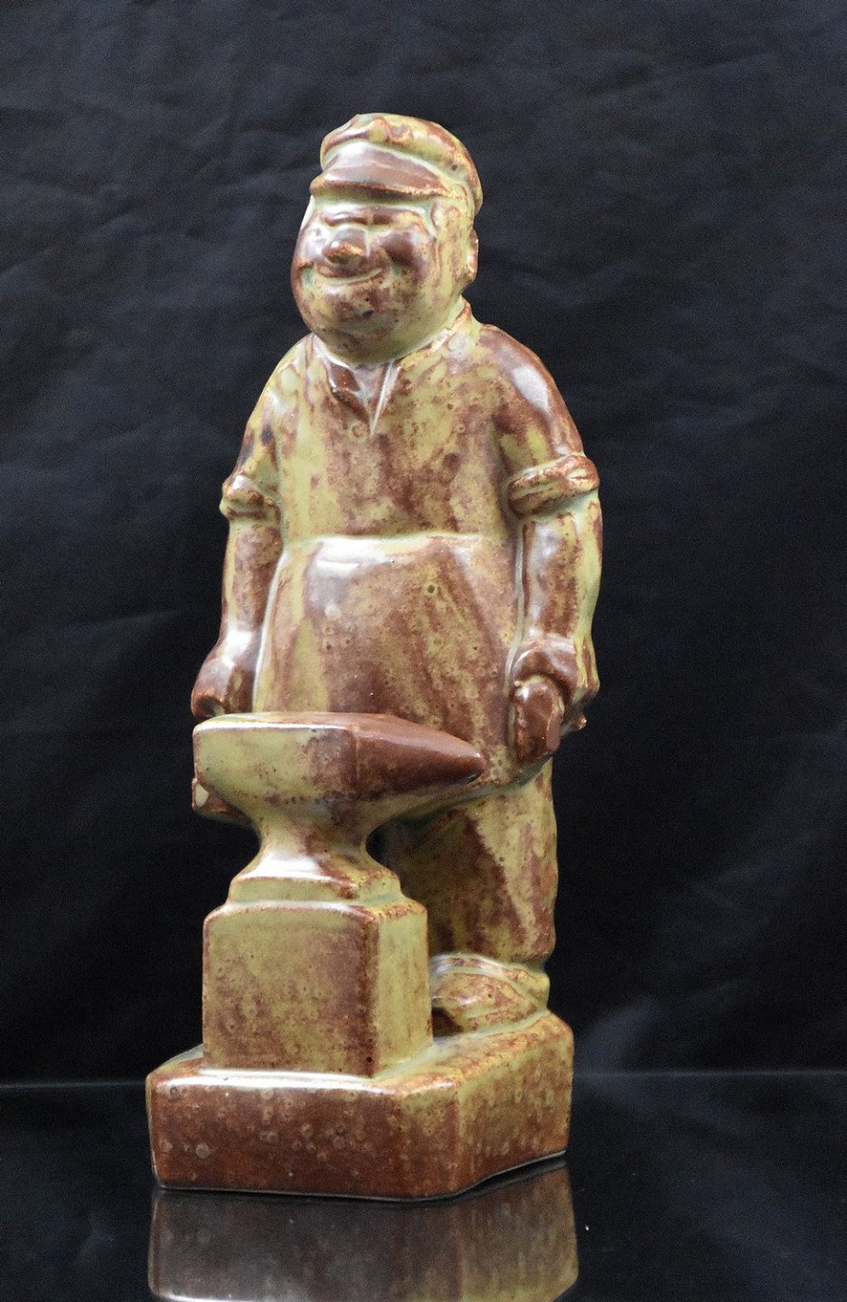 Keramikfigur, keramik, glaseret keramik, smedefigur, smed, lertøj, lertøjsfigur, figur, figur af smed, figur af arbejdsmand