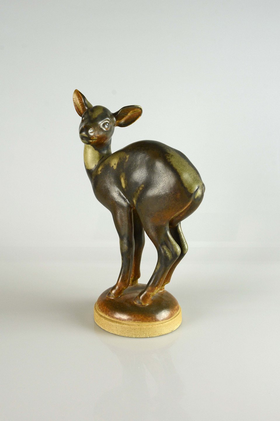 Figur i stentøj med motiv af dåkalv. Nr 1929