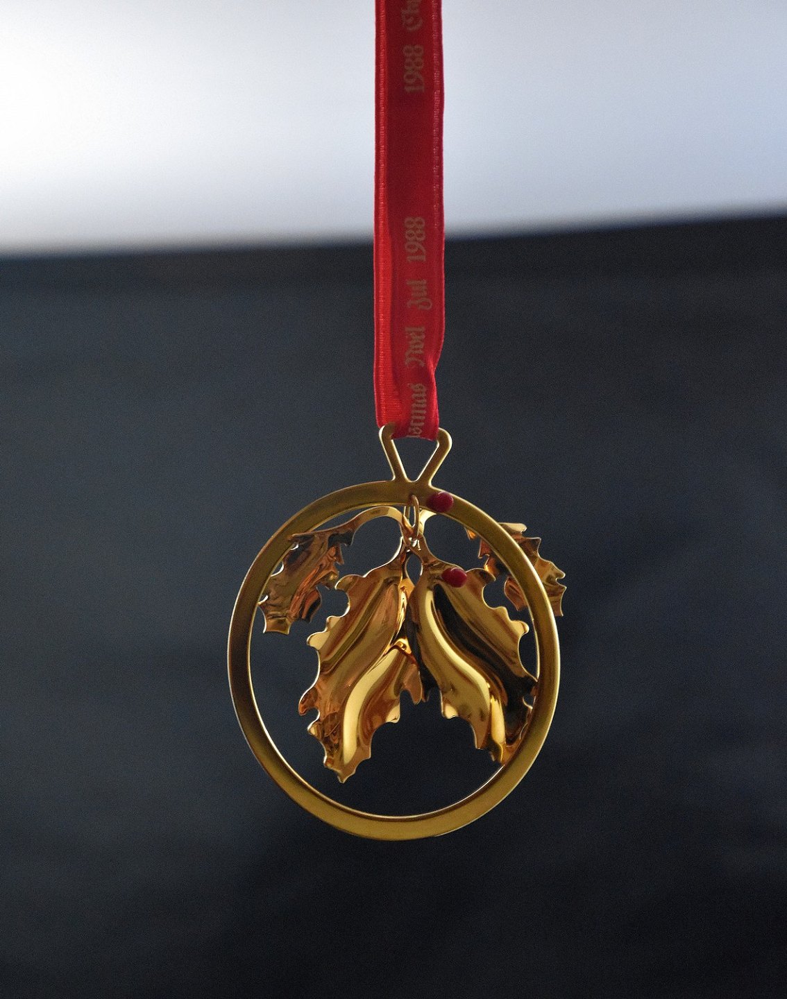 Juleophæng, belagt med 24 karats guld. Ophængene er fra 1991, 1992 og 1993. Design Georg Jensen