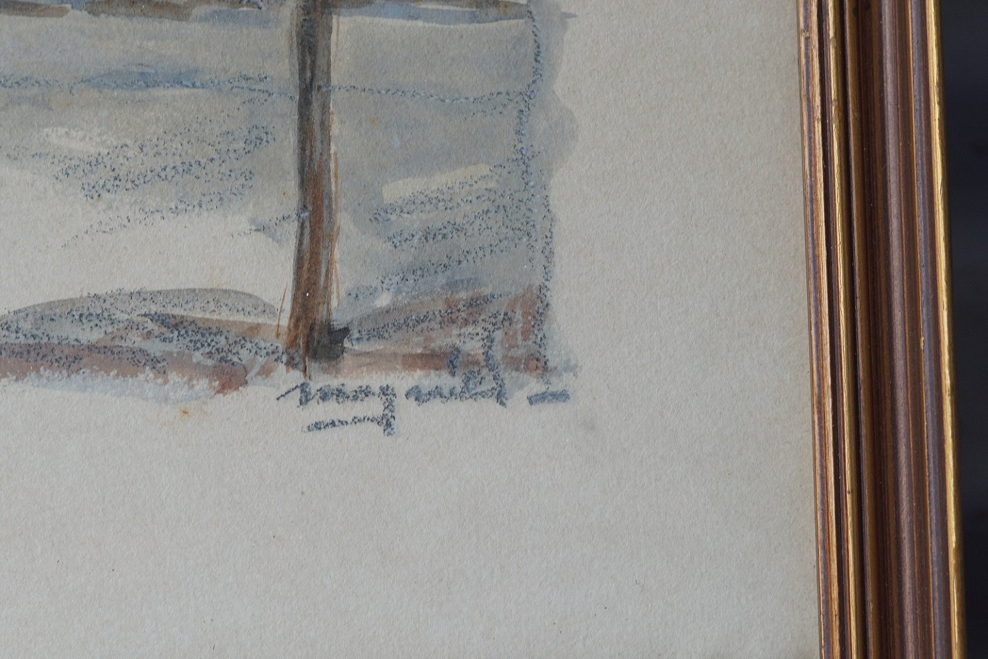 Herman Axelsen akvarel Stråtægt gård 32,5 cm