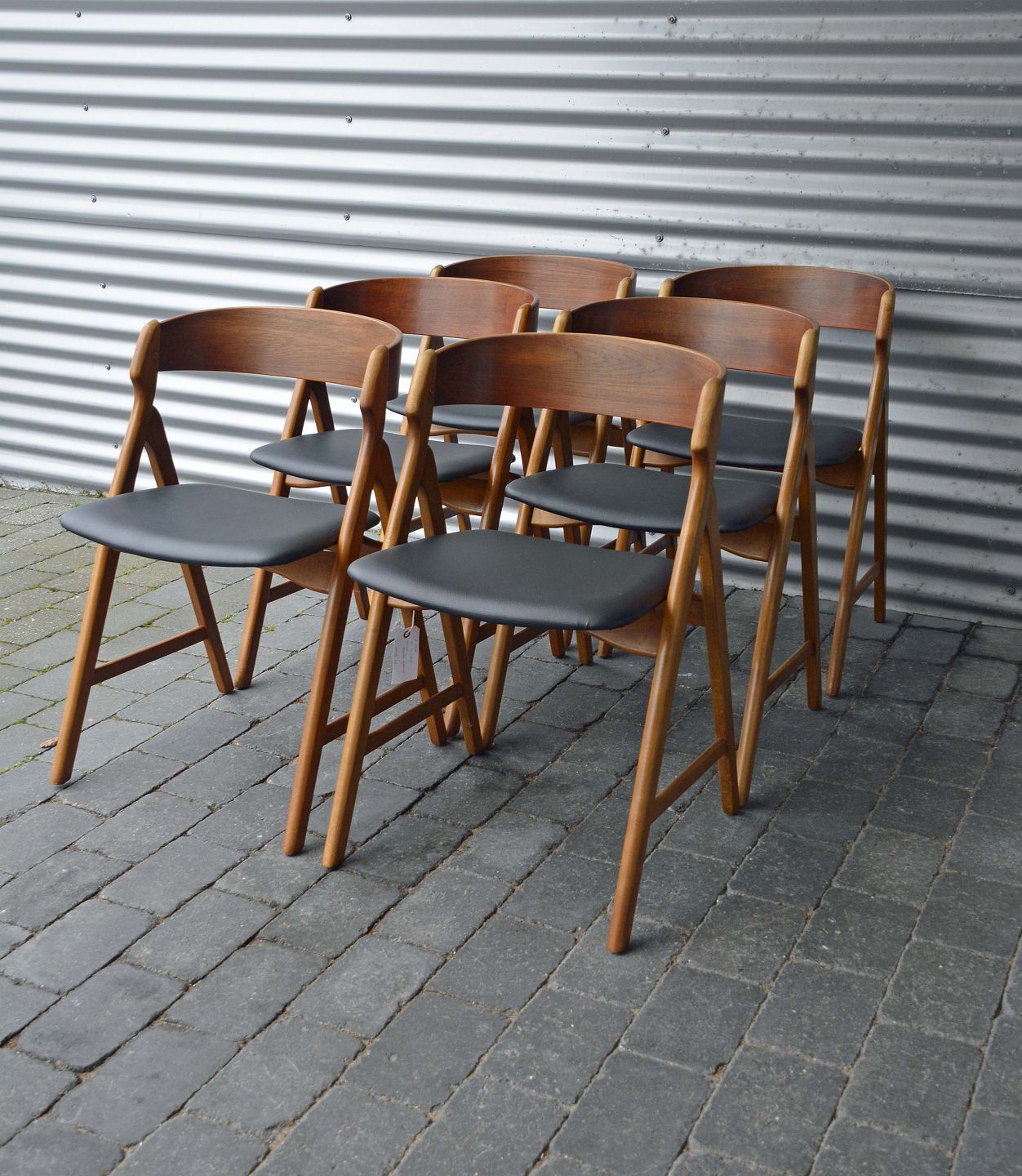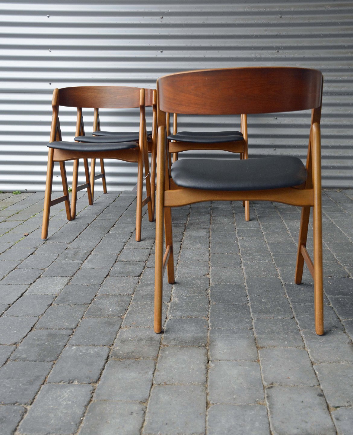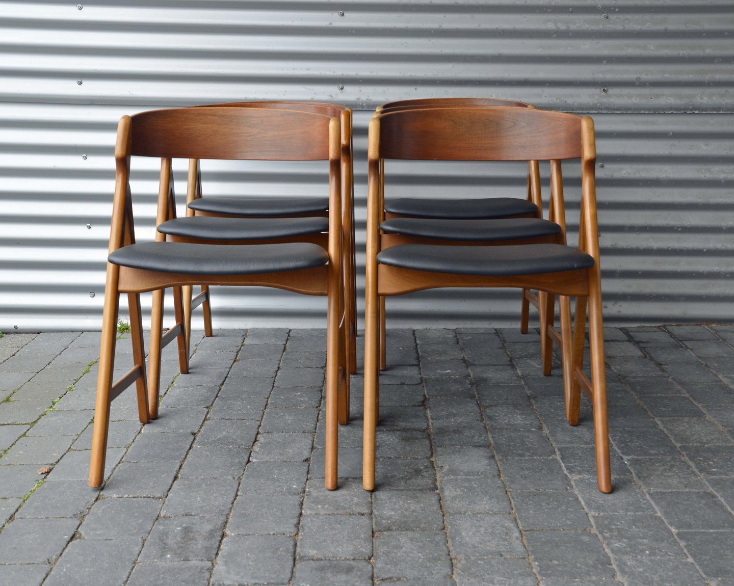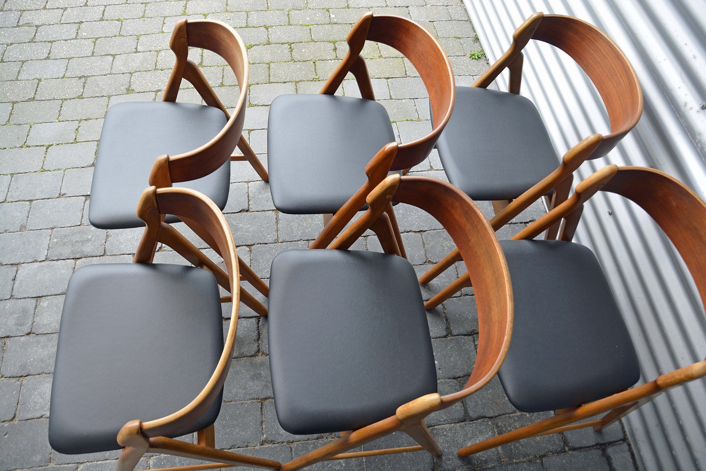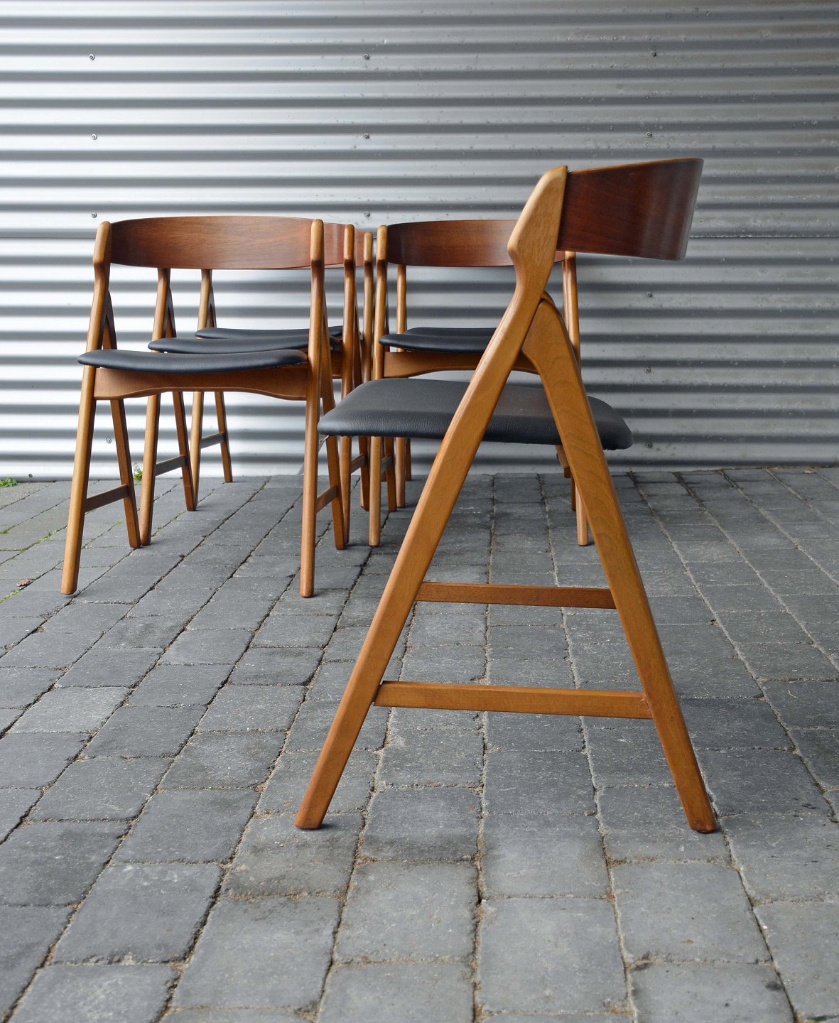 6 Spisebordsstole i bejdset bøgetræ med ryg af teaktræ