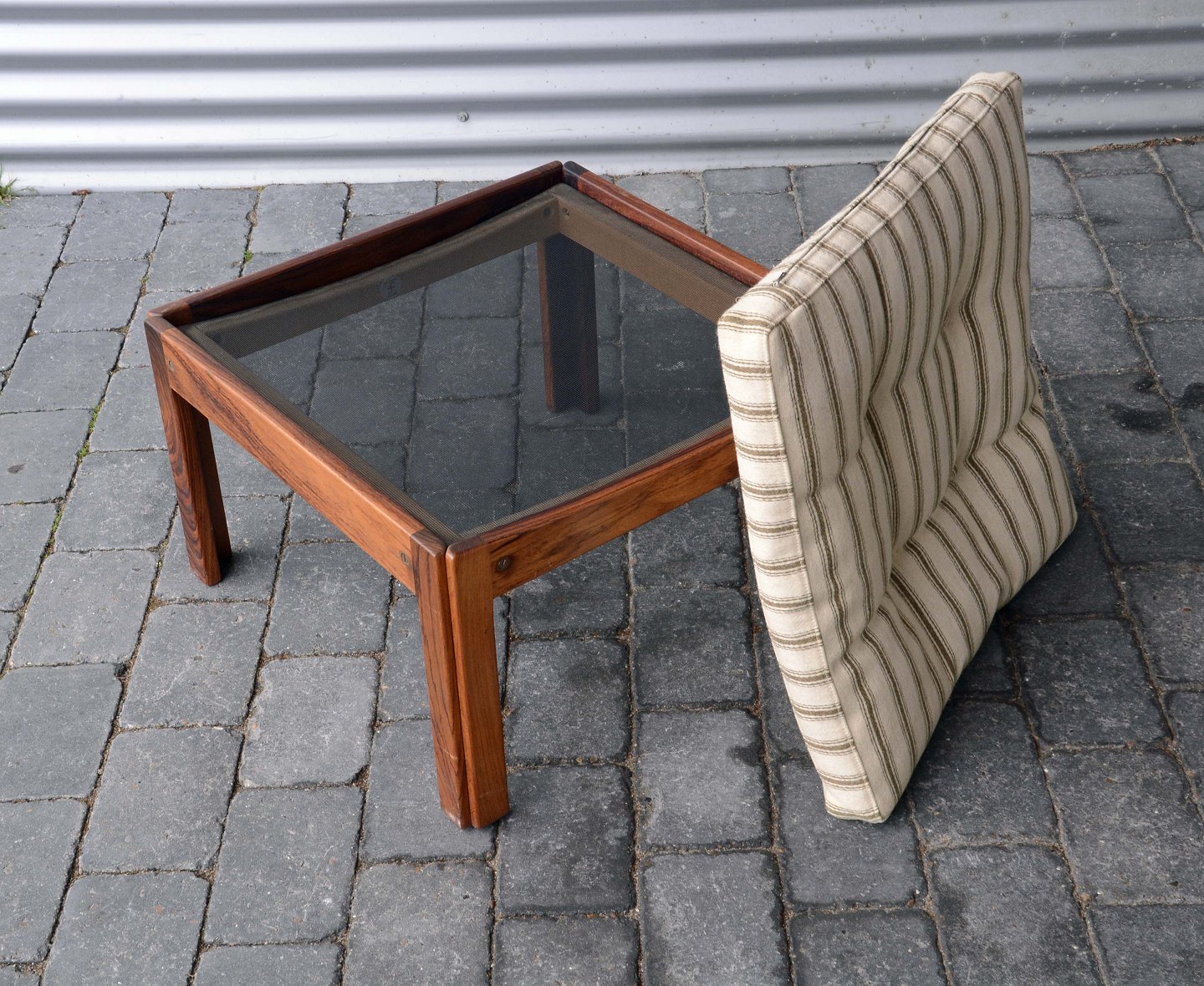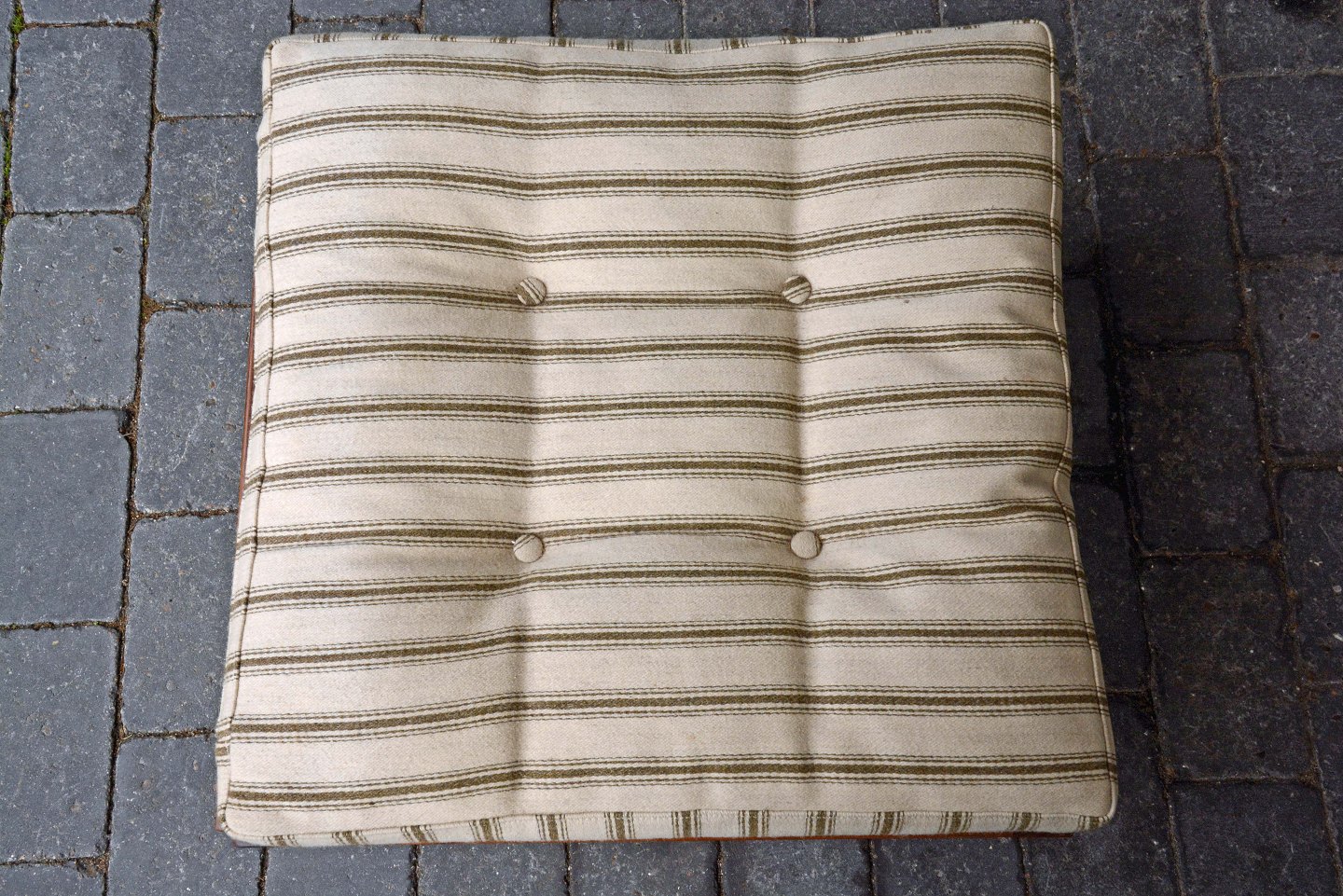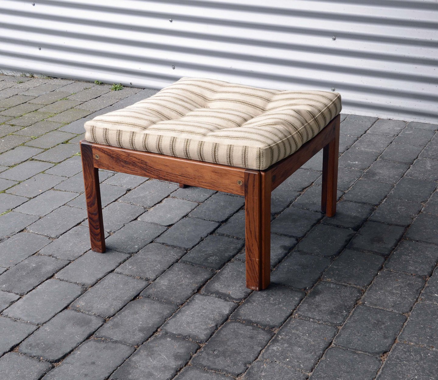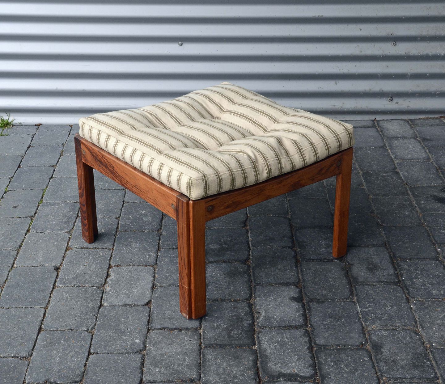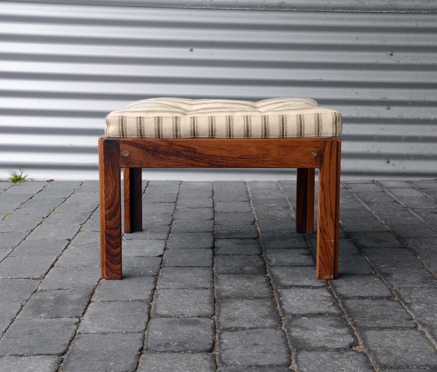 Plexus skammel i palisander med nye gjorder og ældre hynde i stribet uldstof
