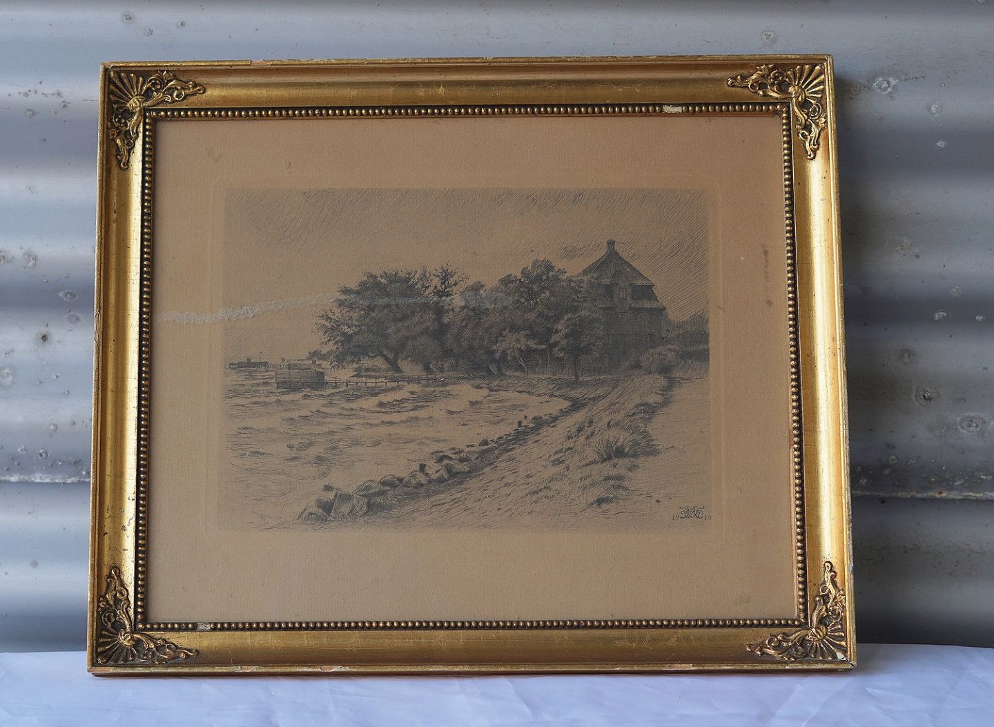 Strandvejsstien med villa Augusta, Helsingør. Radering