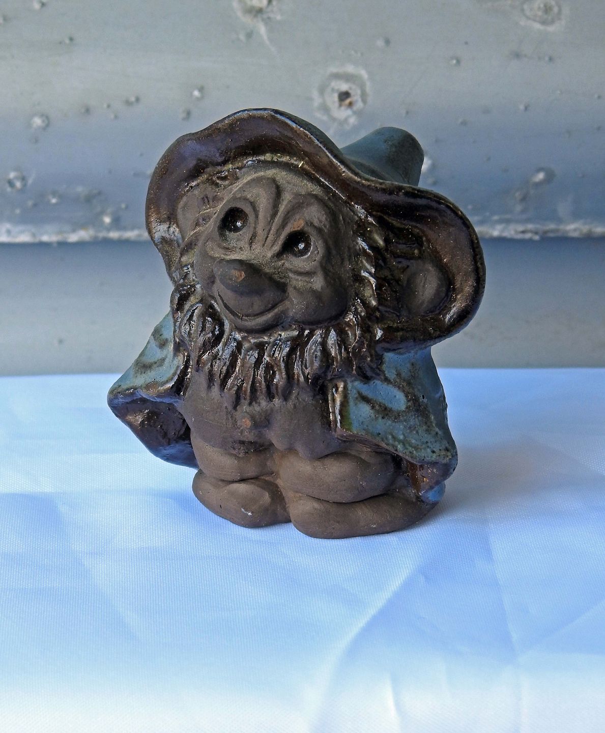 Dam trold i keramik med motiv af Troldedreng med grå kappe og skæg