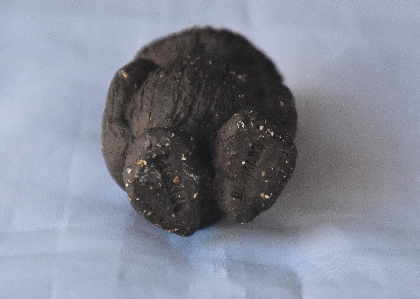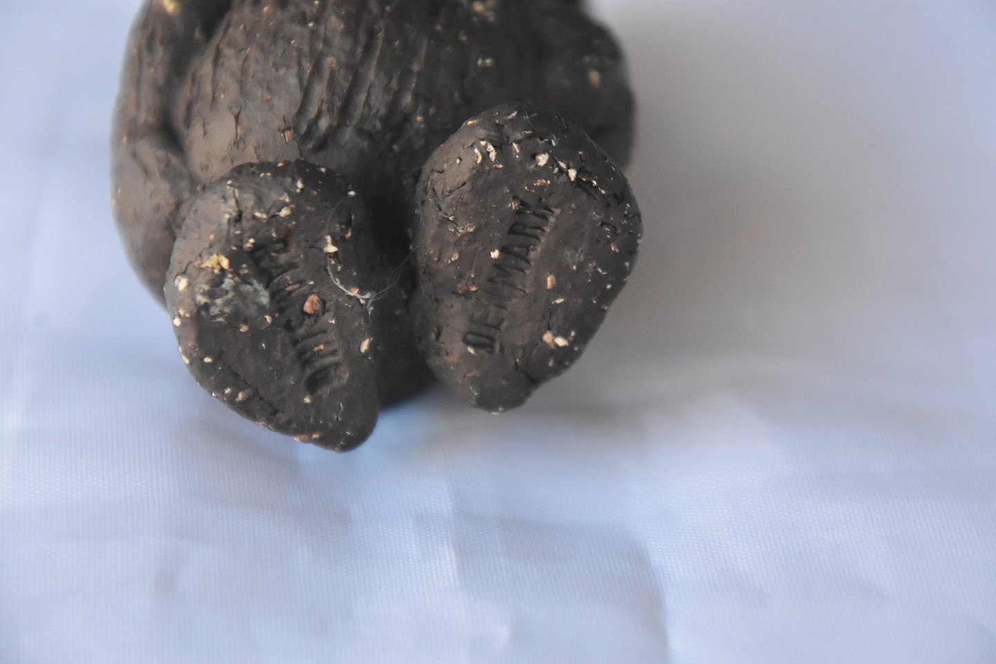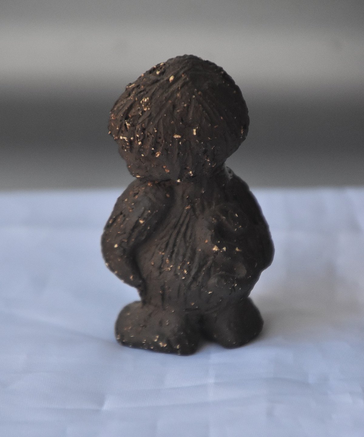Troldefigur i keramik med motiv af troldepige med bagudvendt ansigt