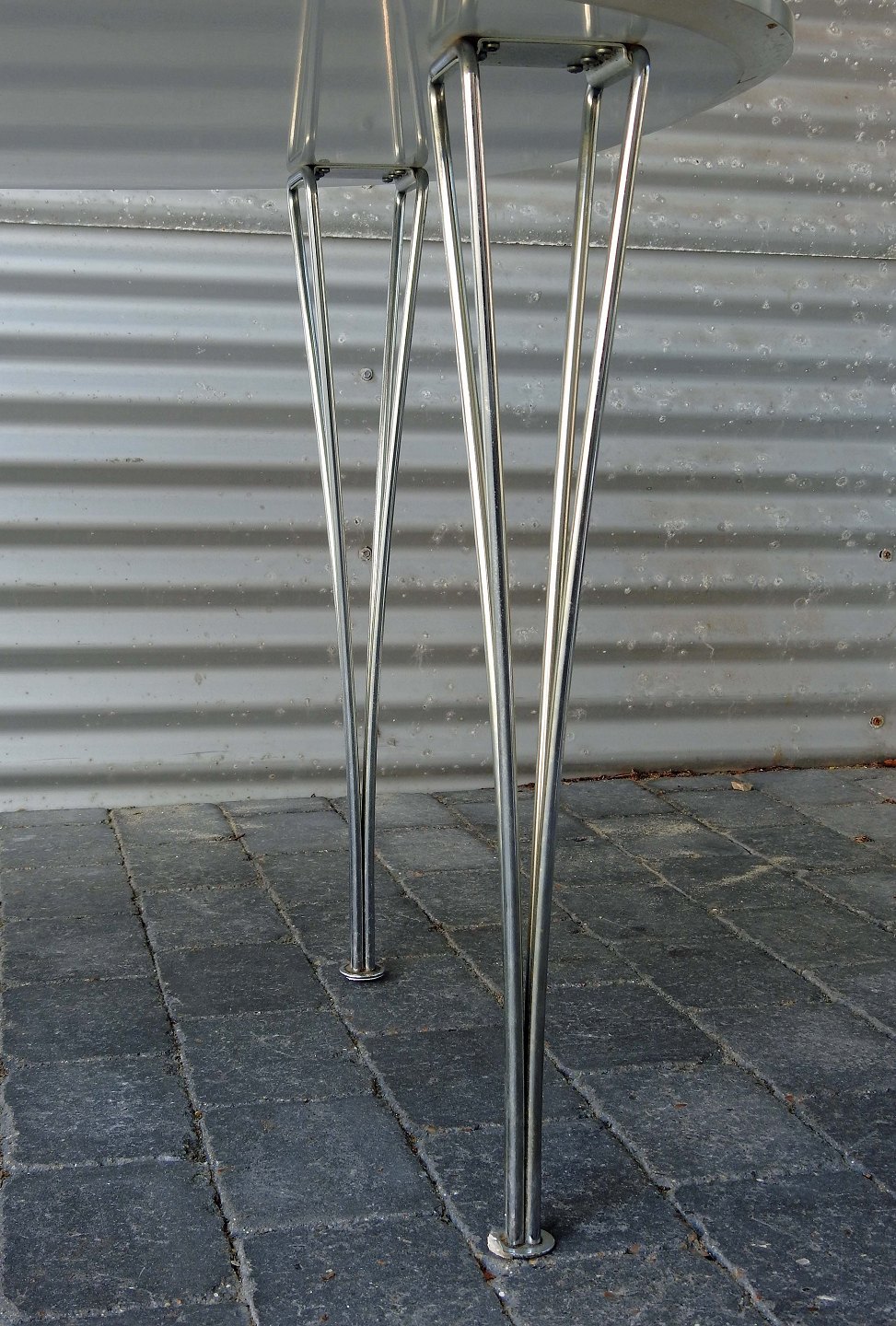 Ellipse bord med topplade i hvid laminat med aluminiumskant og forkromet stel.