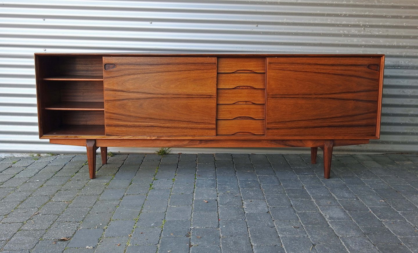 Skænk i palisander med 5 skuffer og to låger med 4 indvendige hylder