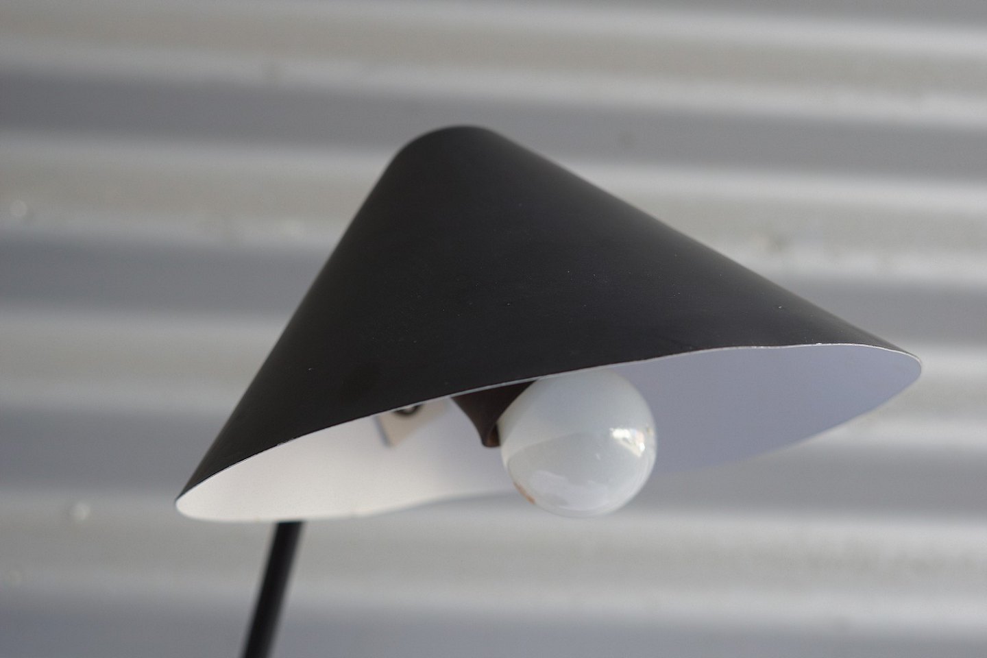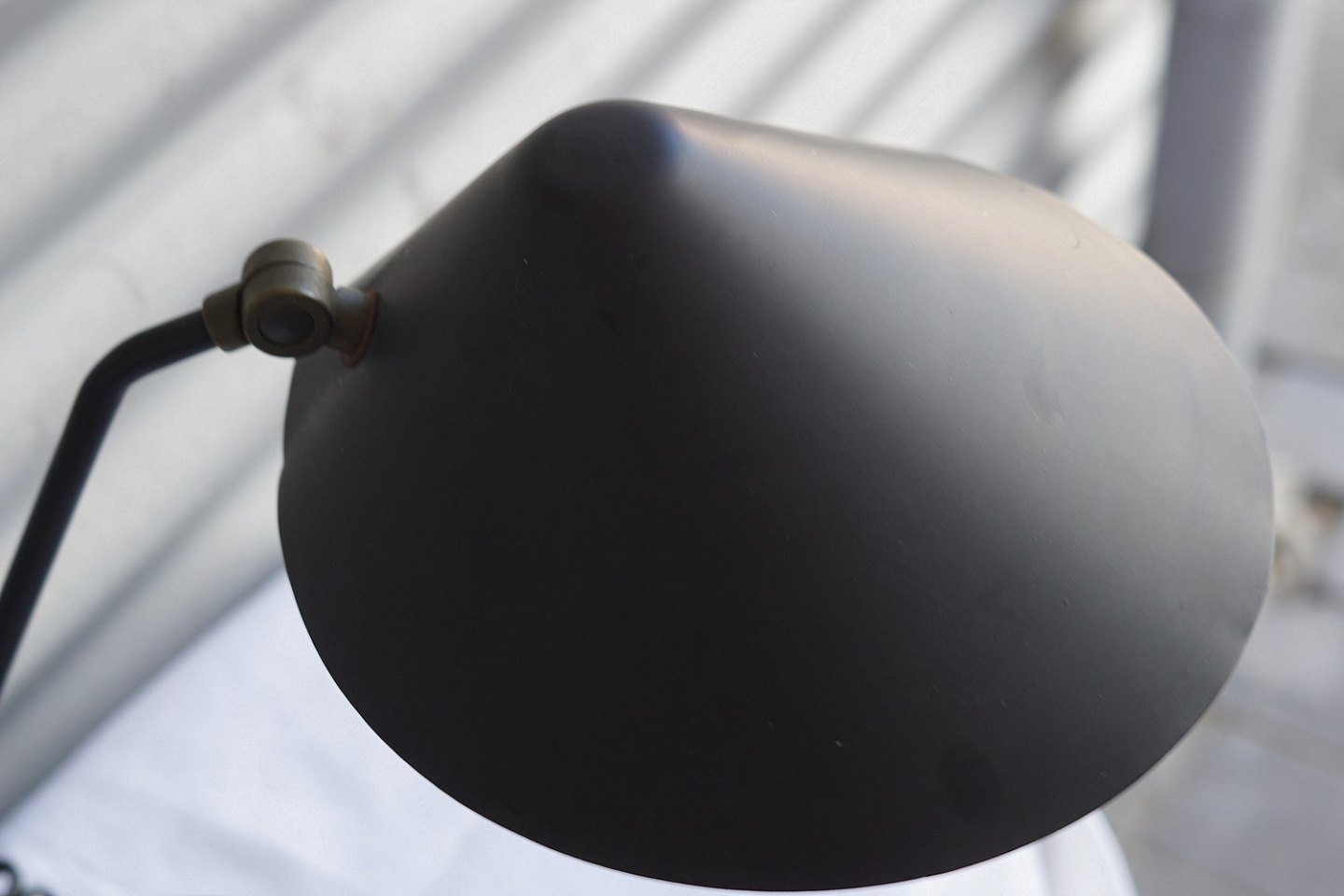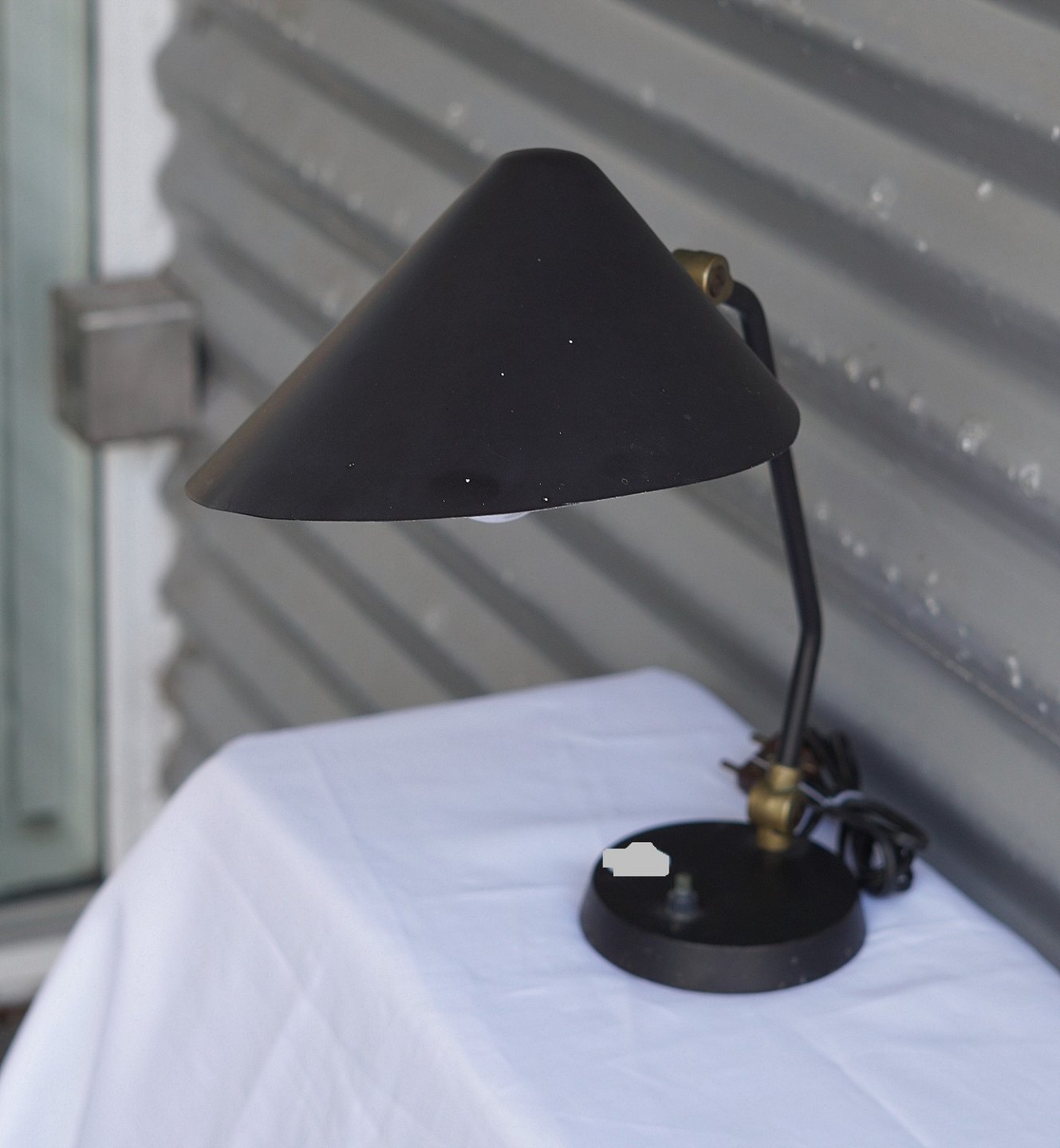 Sort bordlampe med messing fittings, af metal der er malet matsort
