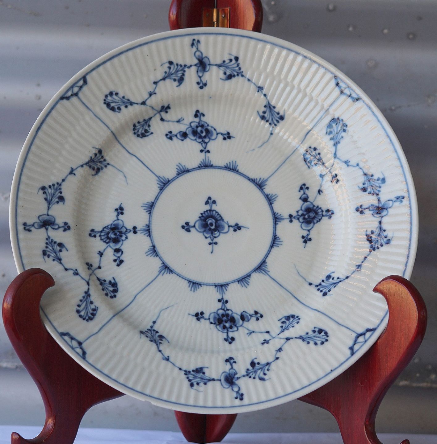 Riflet musselmalet middagstallerken Den Kongeli