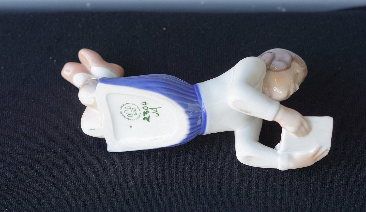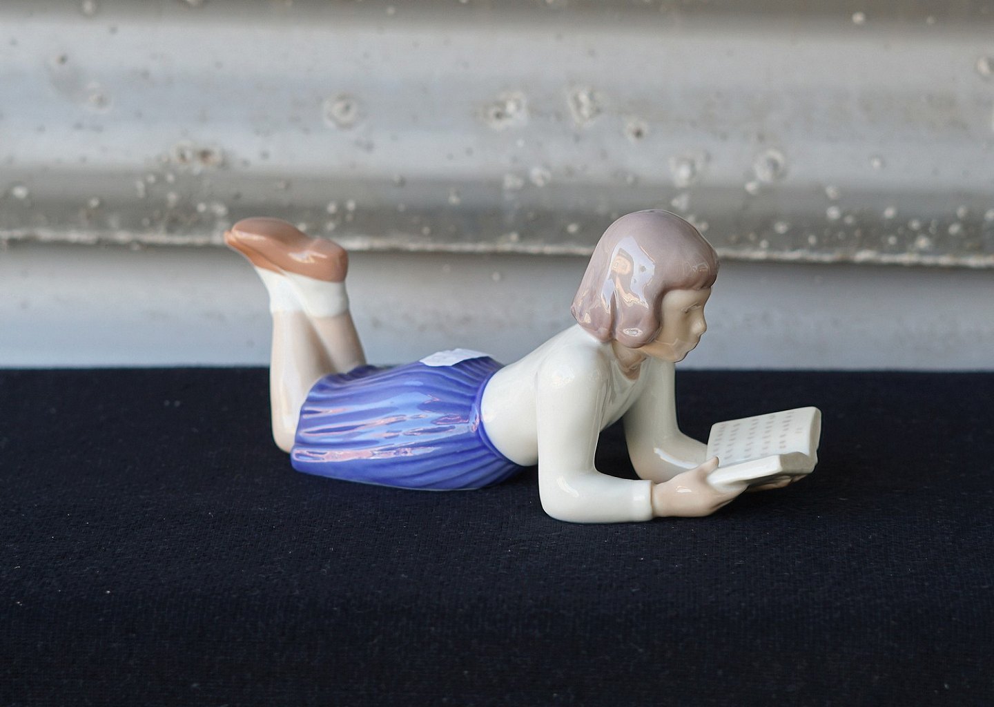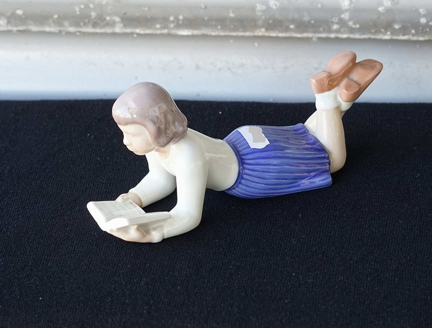B&G Figur i porcelæn med motiv af Pigen Merete, som ligger og læser. Nr. 2304 Design Svend Jespersen