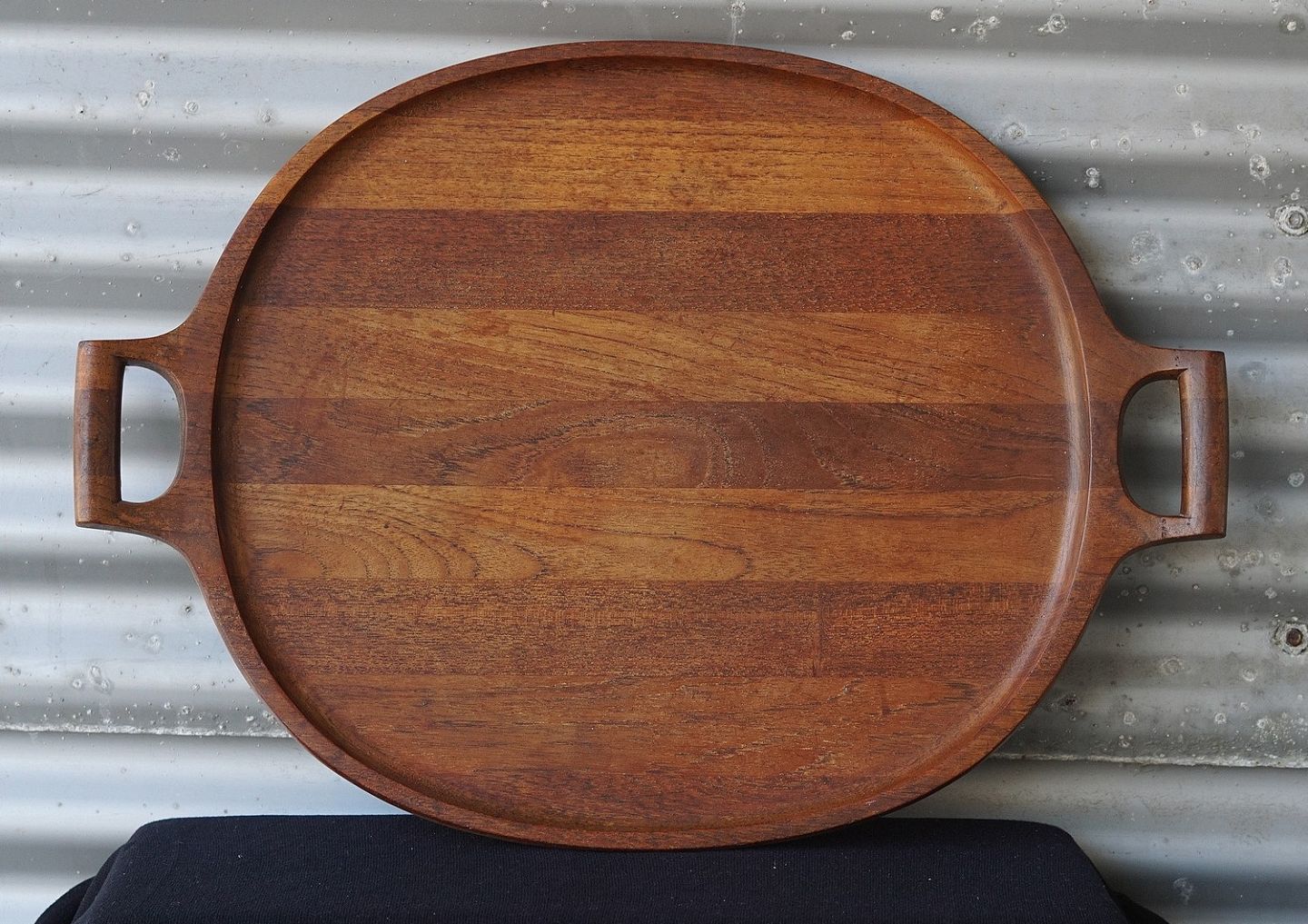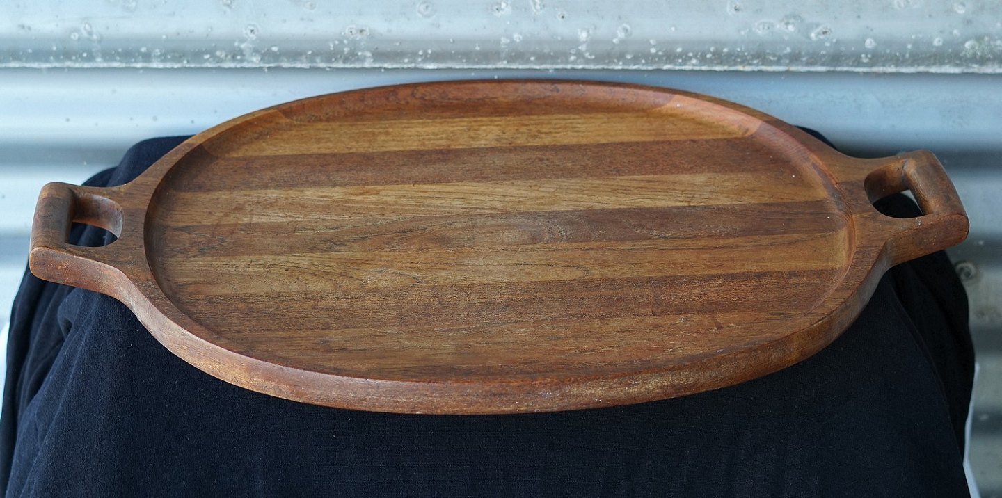 Teaktræs stavlimet serveringsfad, mærket IHQ