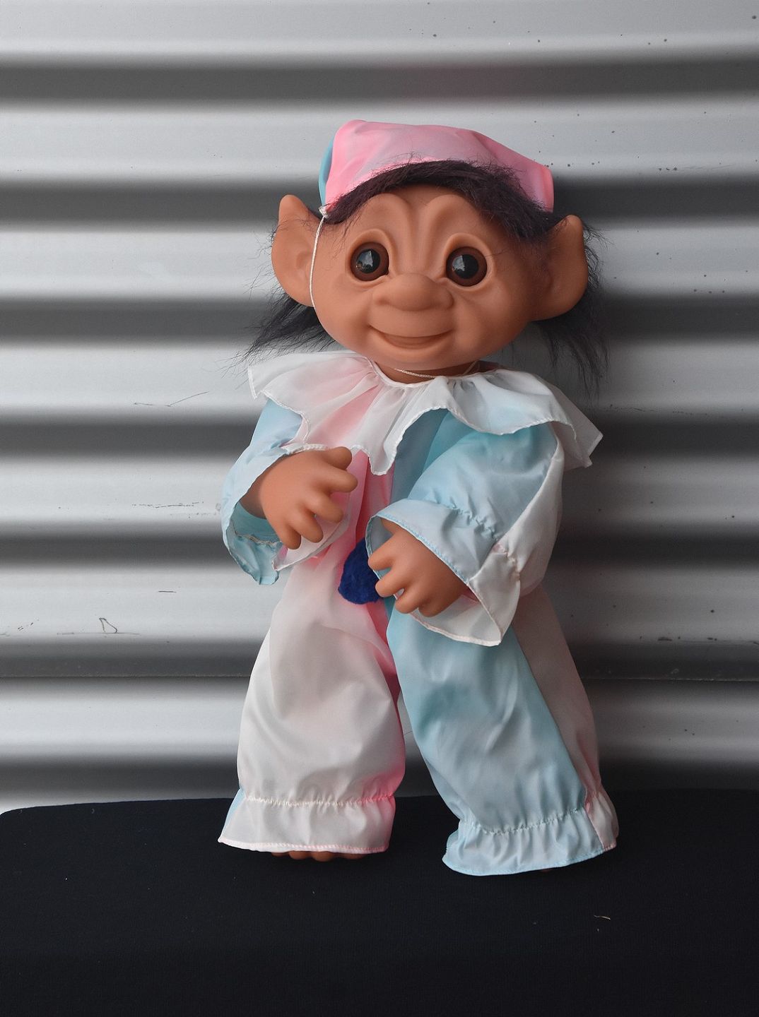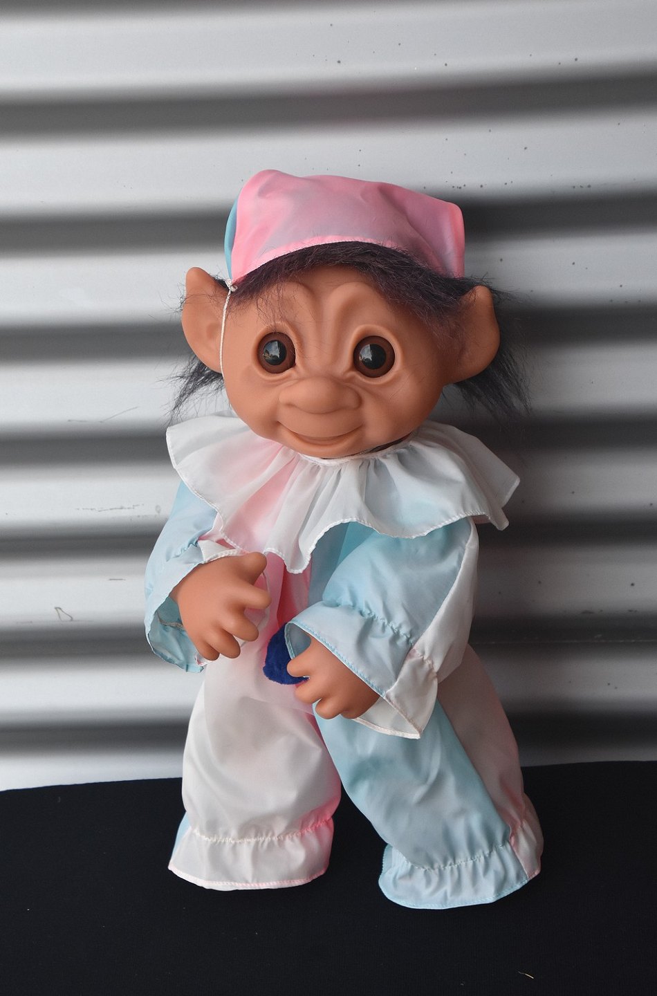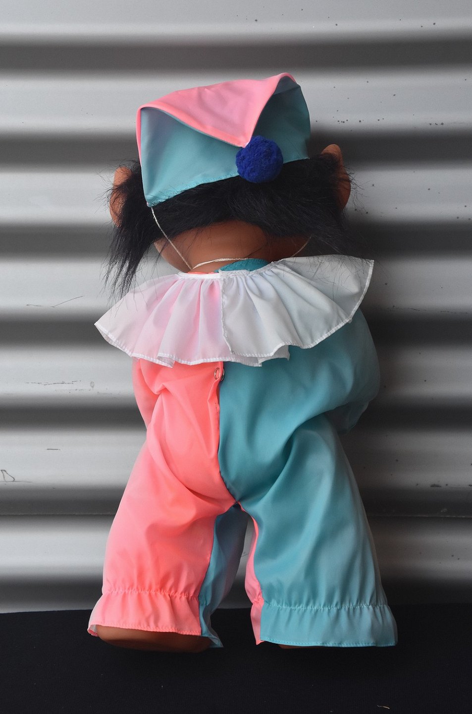 Klovnetrold fra 1979, lavet i plastmateriale og silke tøj