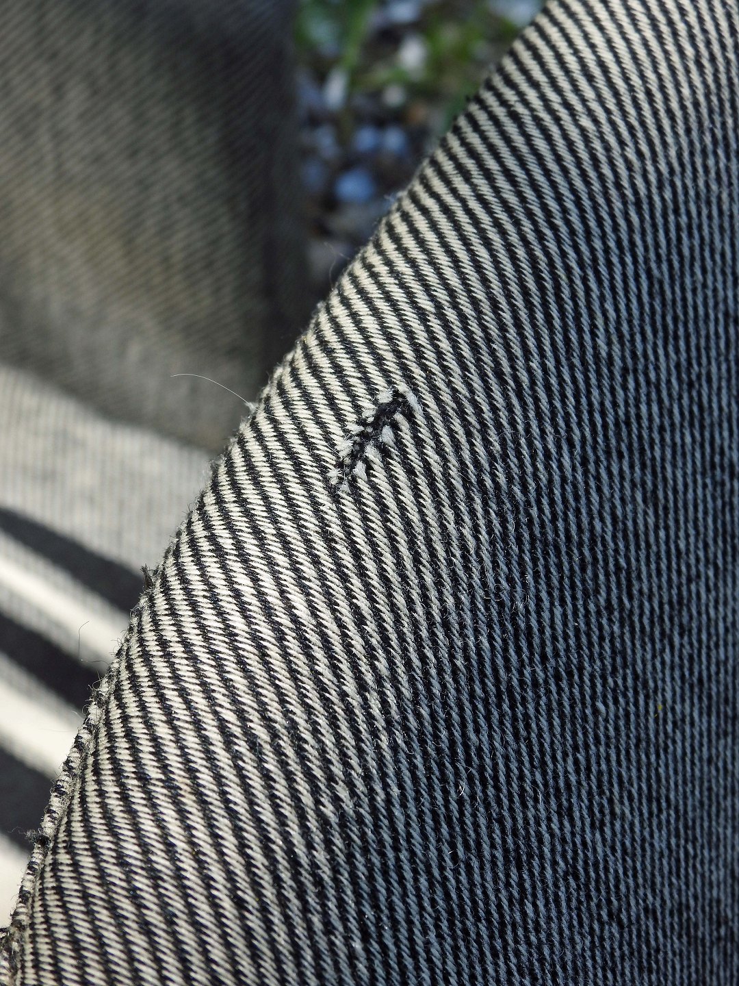Fremstår med lettere slid på stof ved armlæn samt en mindre revne i stoffet på stolens top. Lettere brugsspor på ben.