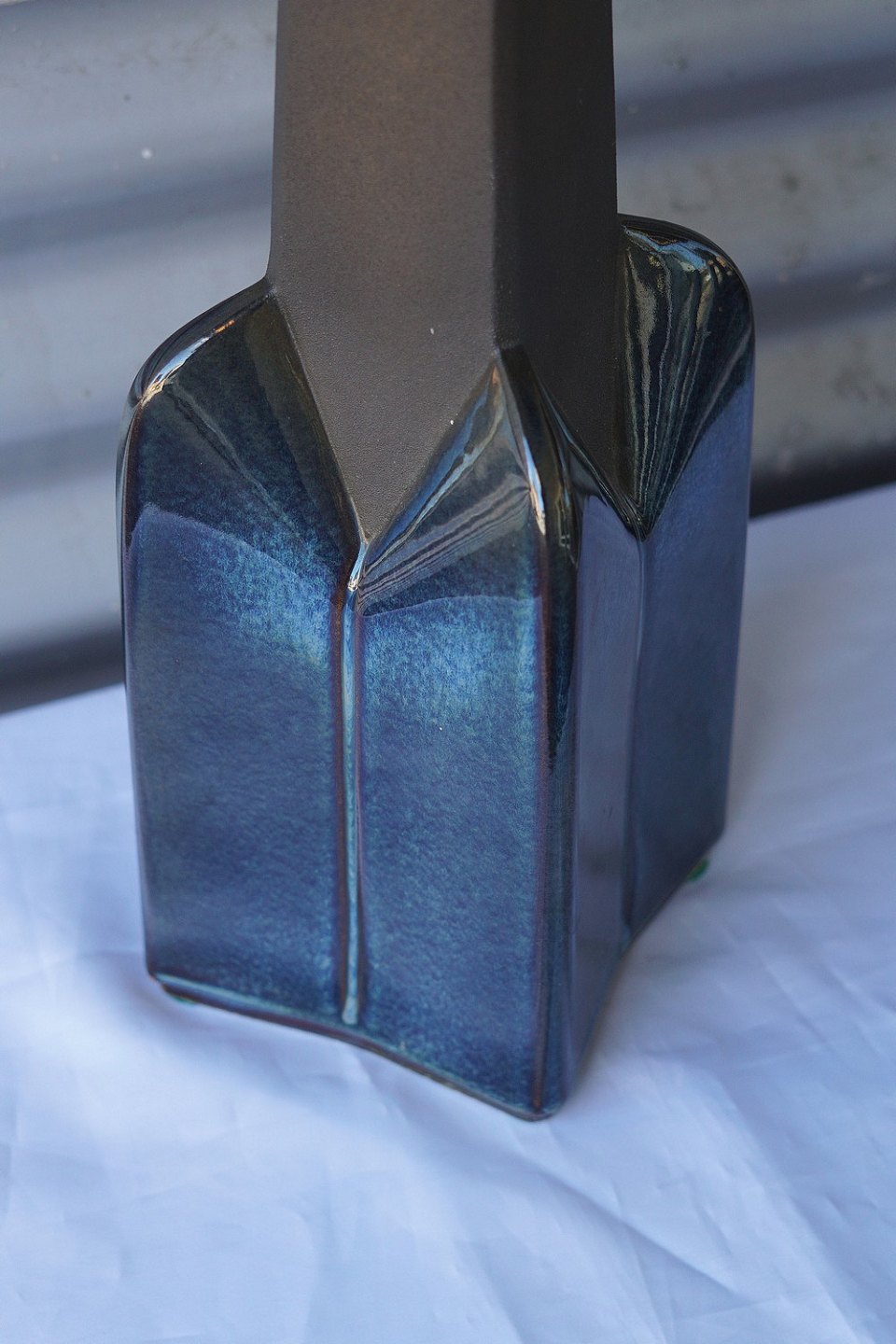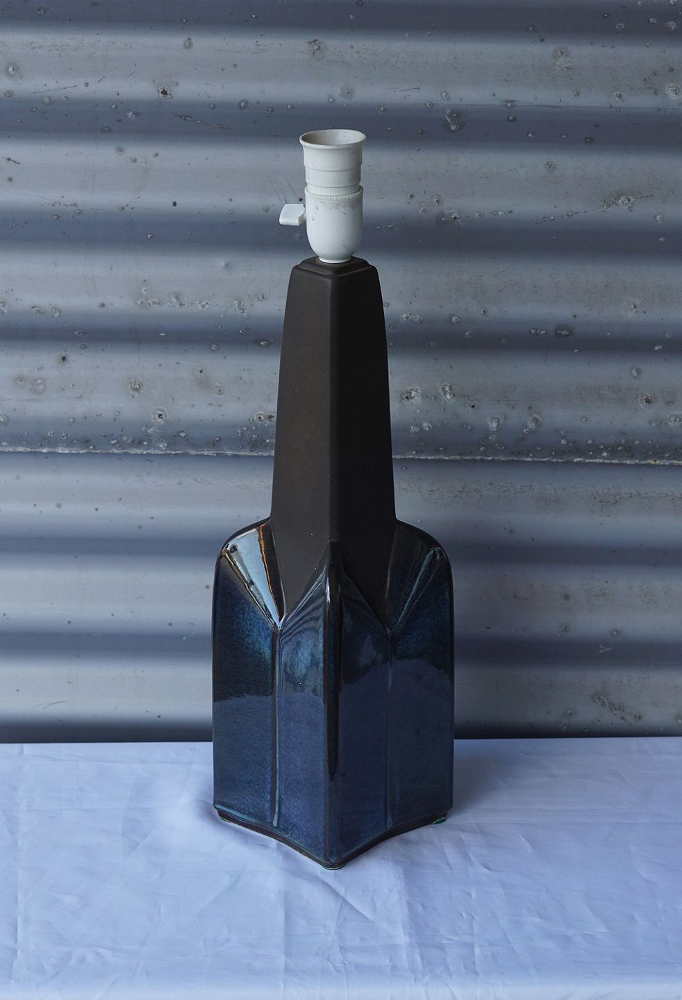 Blåglaseret bordlampe (1029), lampen er af keramik