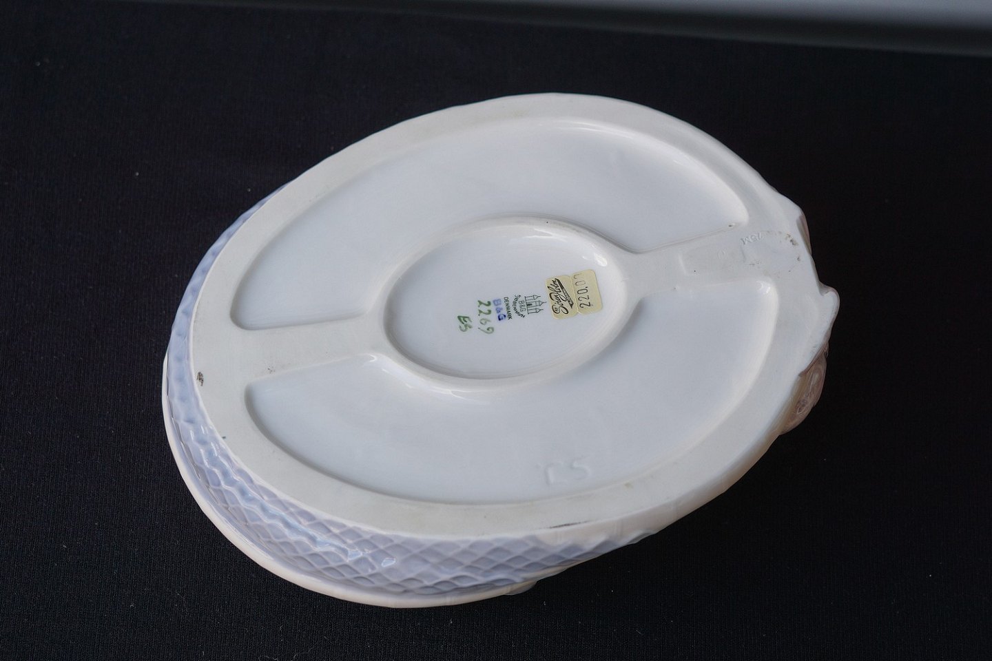 Askebæger (2269) dekoreret som ruse med 2 fisk, tang og krabbe.