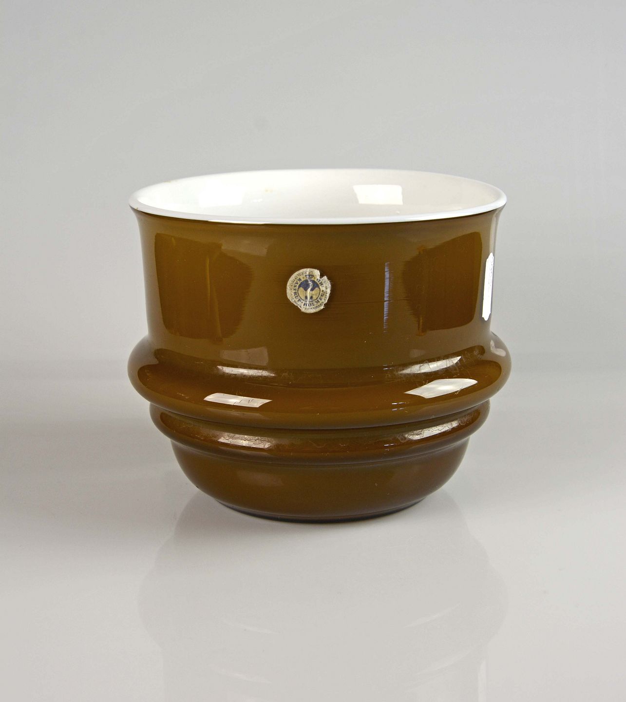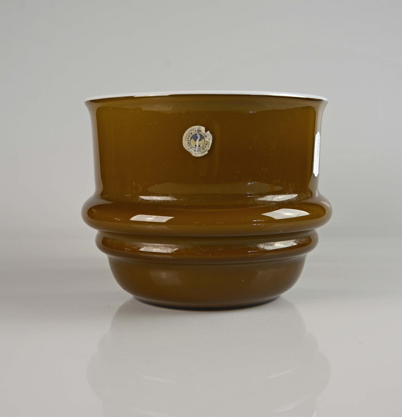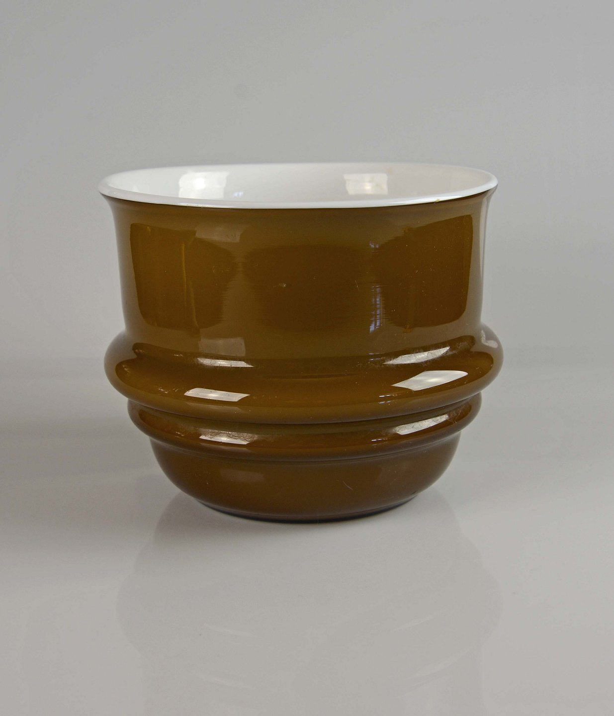 Glasskål med opalhvid inderside og brunt overlagsglas fra Kastrup Holmegaard