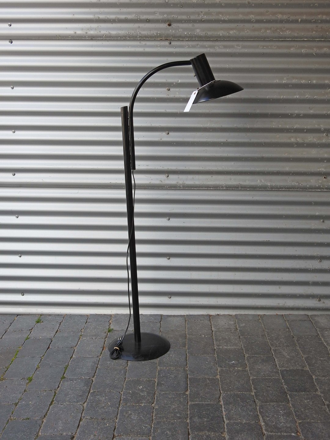 Gulvlampe i sortlakeret metal samt regulærbar skærm og højde
