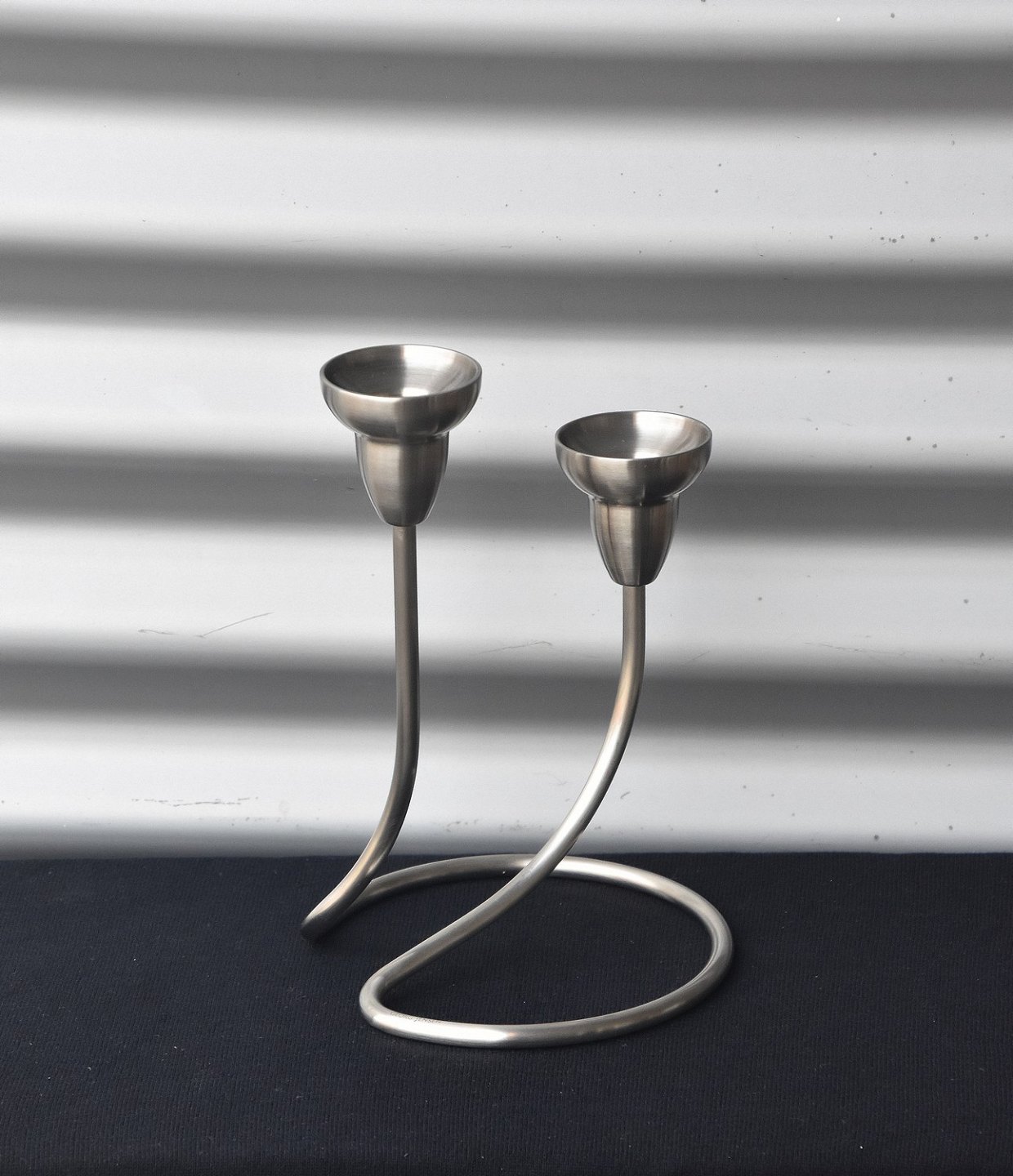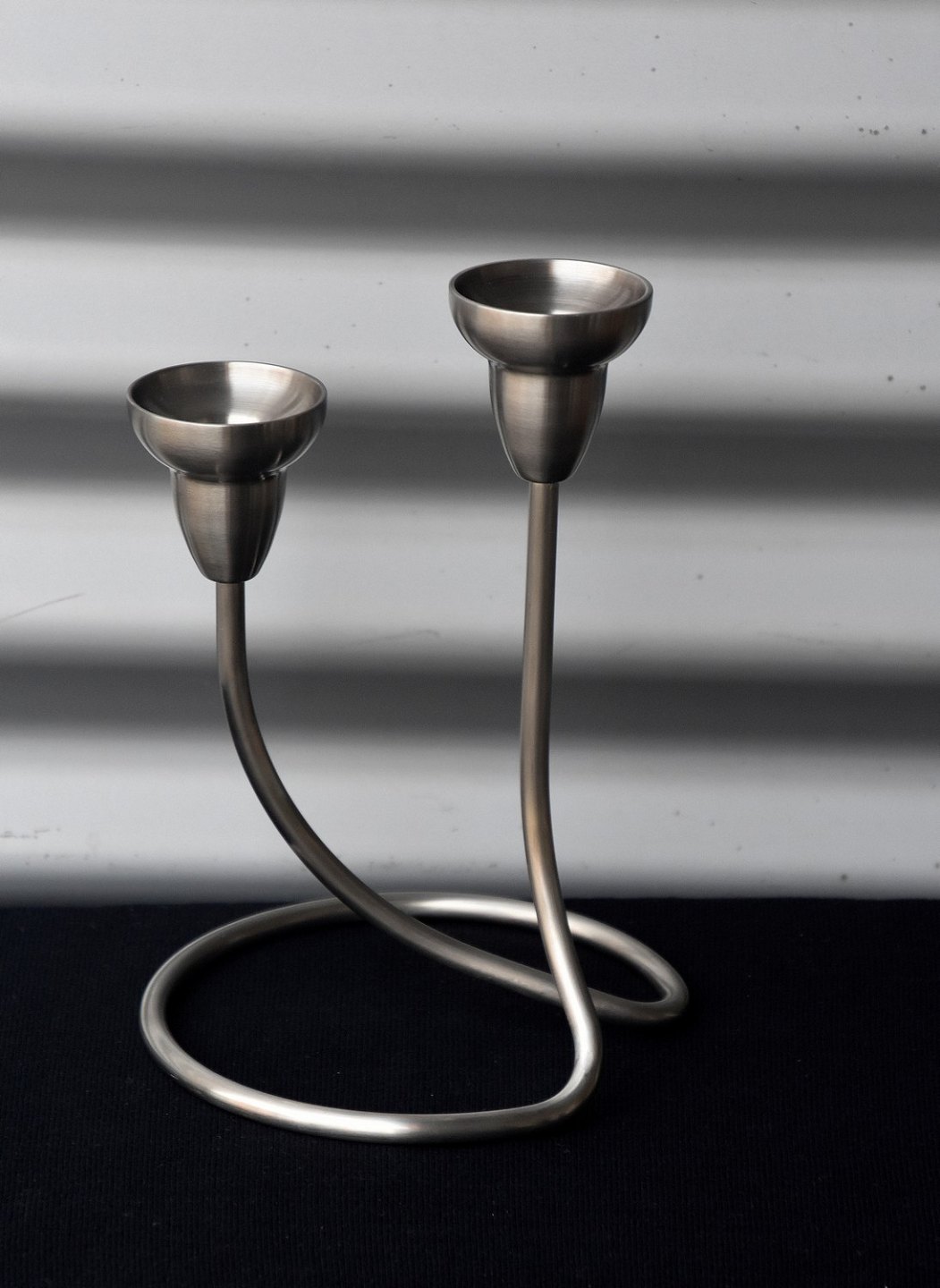 2-armet, Swing lysestage, i mat rustfrit stål i original æske