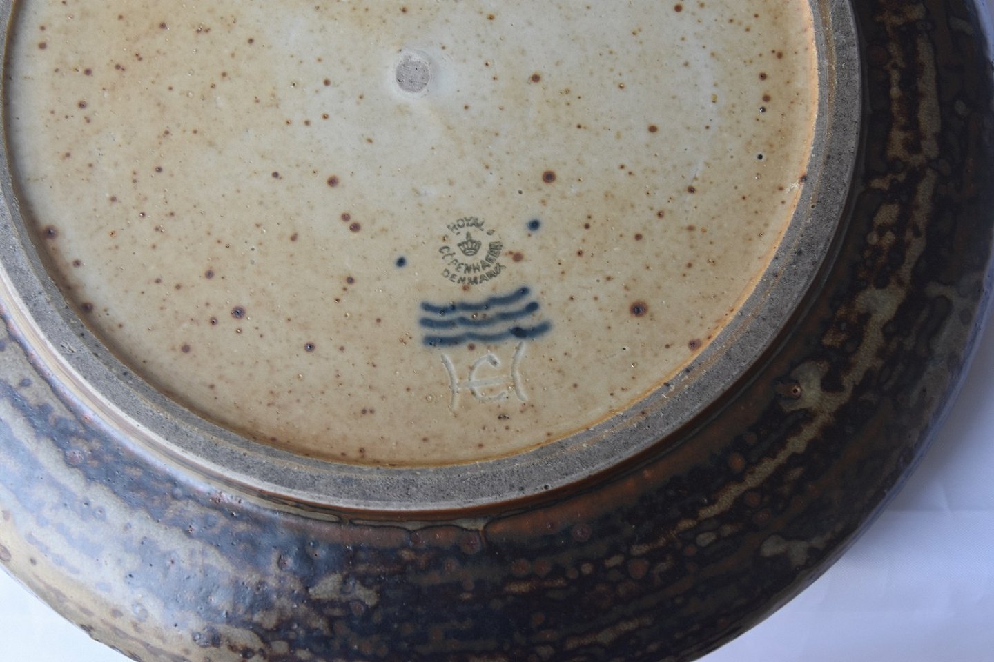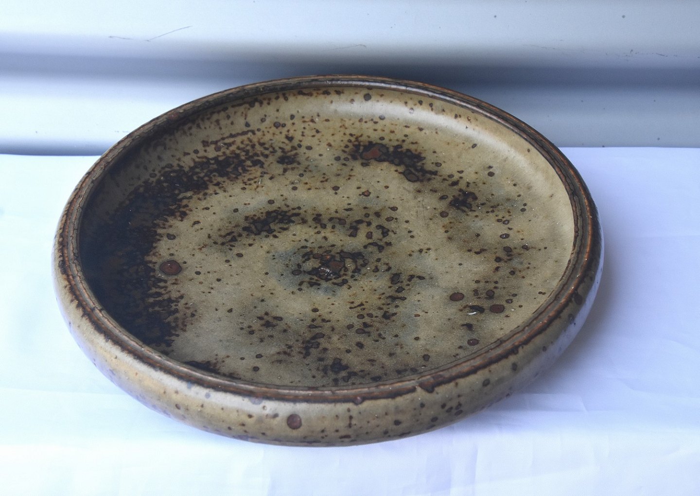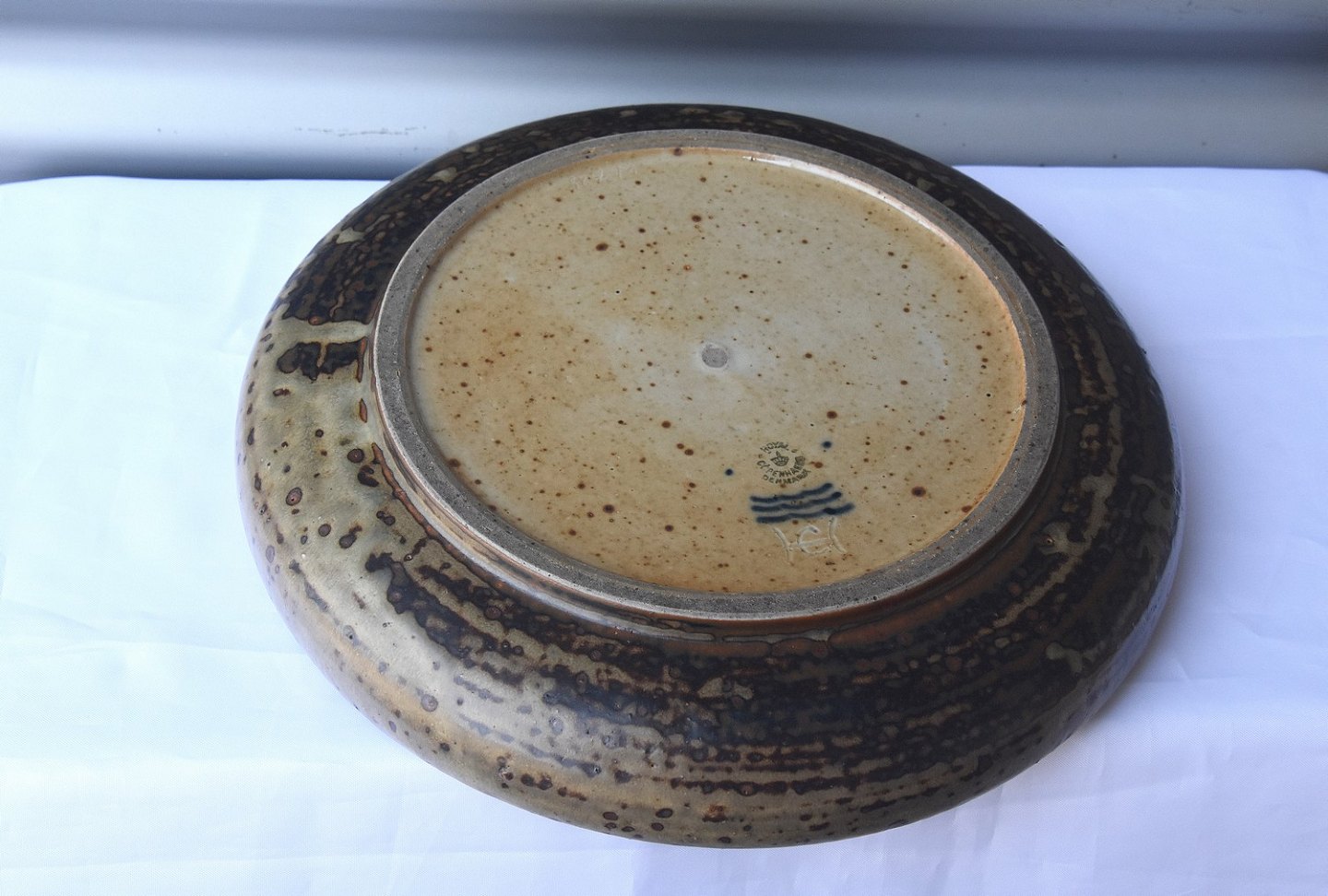 Unika brunligt stentøjsfad (8042) af Carl Halier