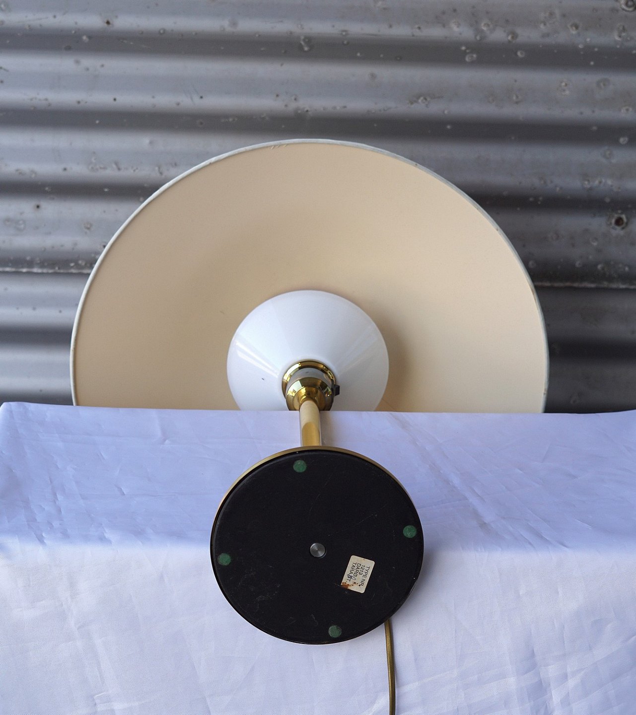 Retro, stilren bordlampe i messing og med stofskærm. Darø Tara st 1213 bordlampe Kongelys
