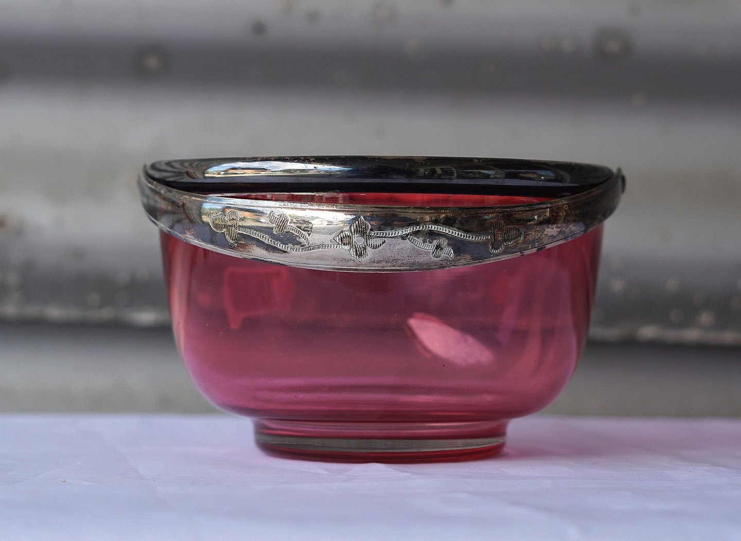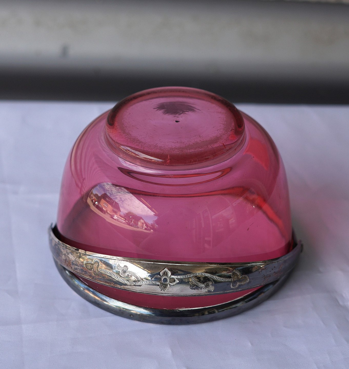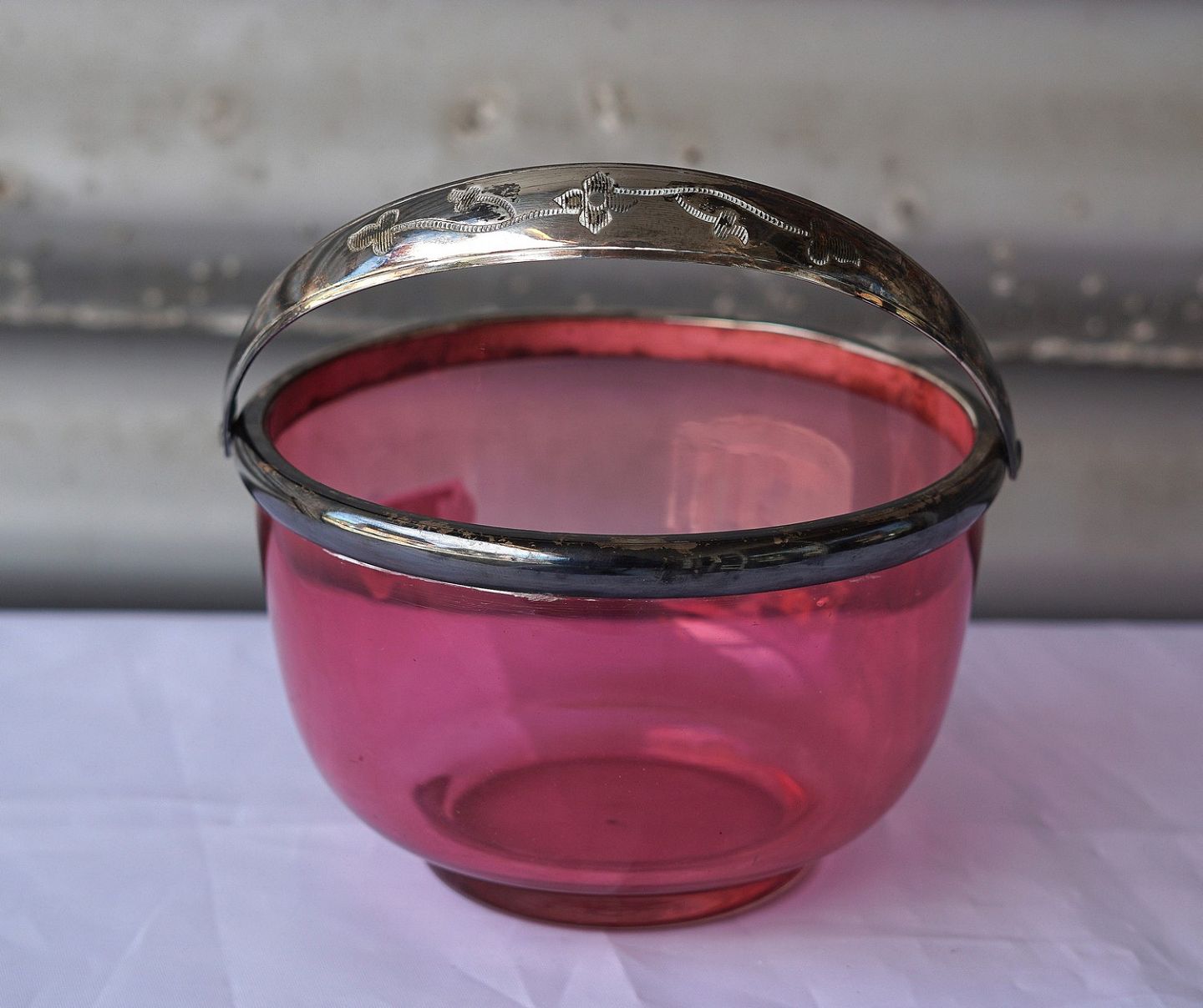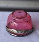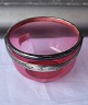 Kandisskål i rosa, presset glas, med forsølvet hank