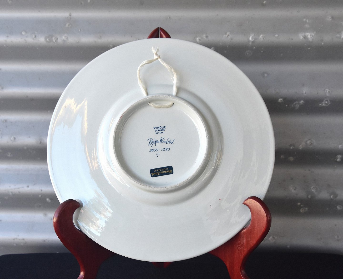 Bjørn Wiinblad platte nr. 3055-1283, Pige med blomster, blå dekor streg