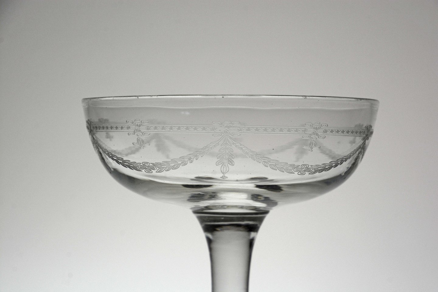 Champagneskål med slibninger fra Kastrup Glasværk. Den hedder enten Betty eller Haakon, idet jeg ikke kender forskellen på de 2 glas.